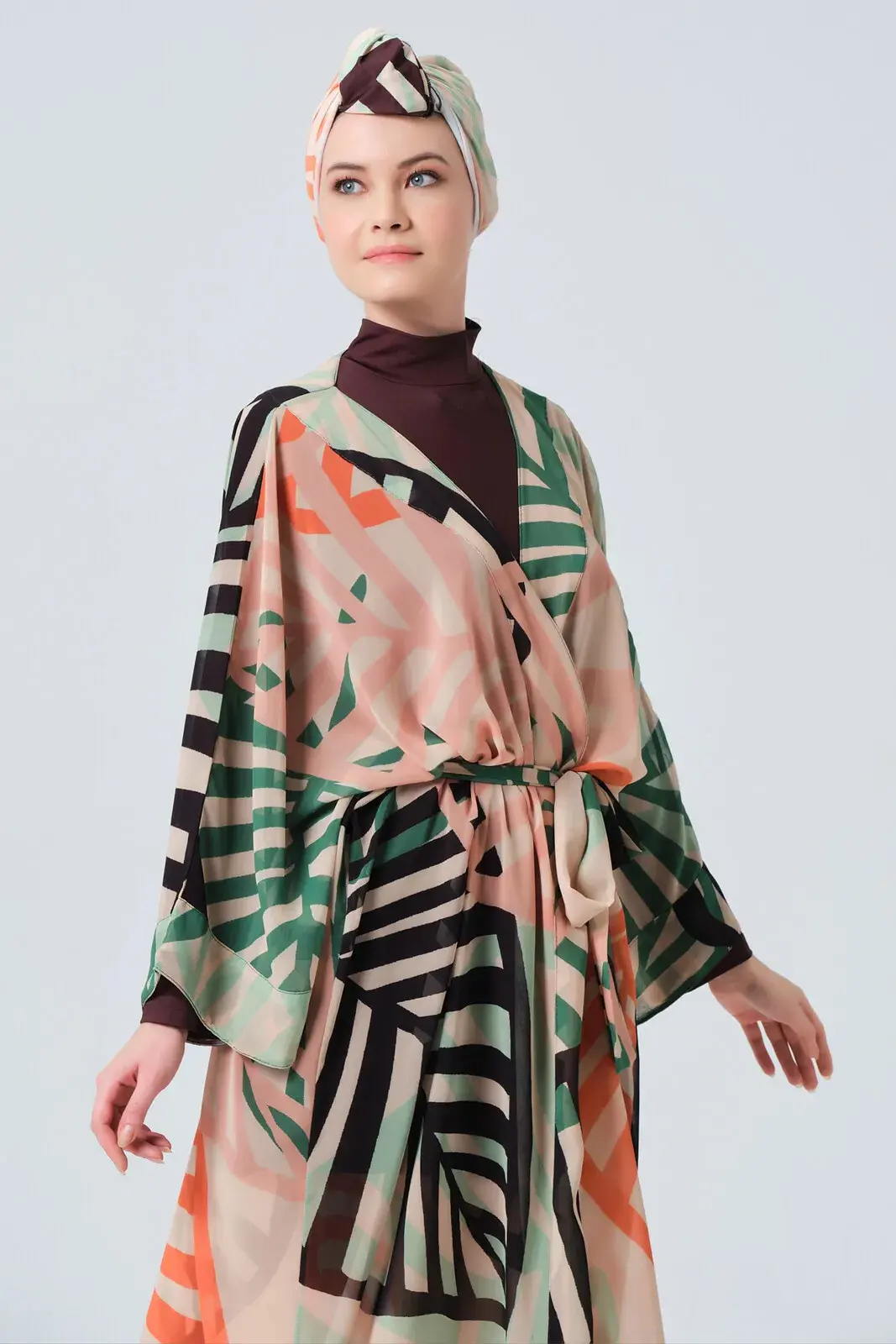 • Şifon kumaş. Tabiat desenli. Kemer detaylı tasarım. ;