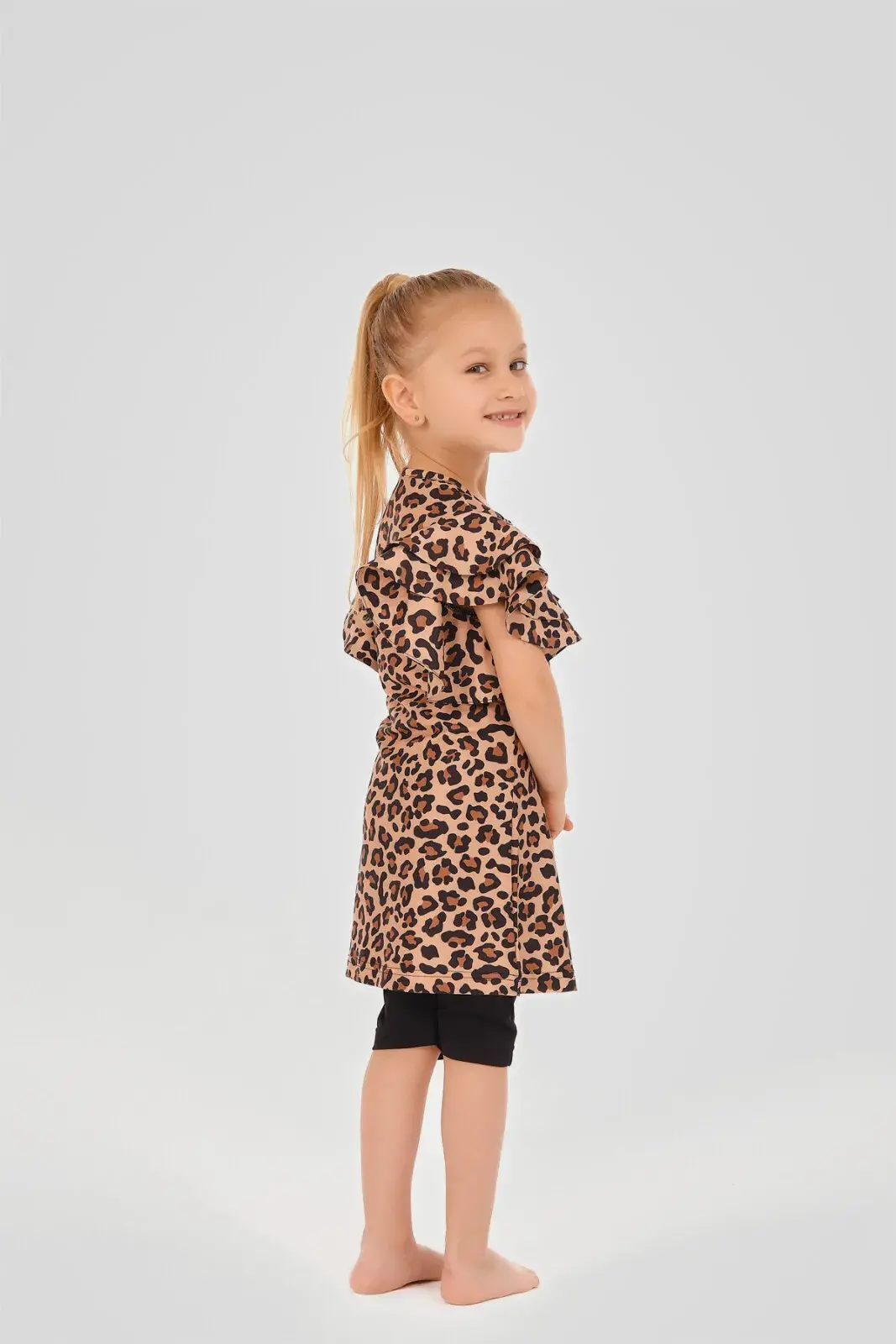 Alfasa Helin Leopar Desenli Tayt Şortlu Yarım Kol Çocuk Mayo 24100 Siyah