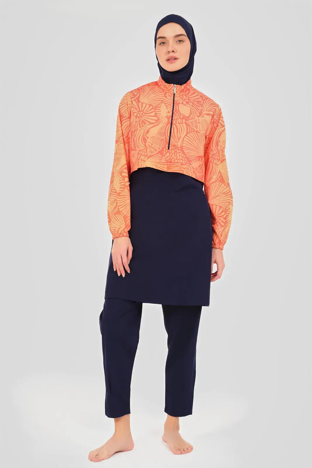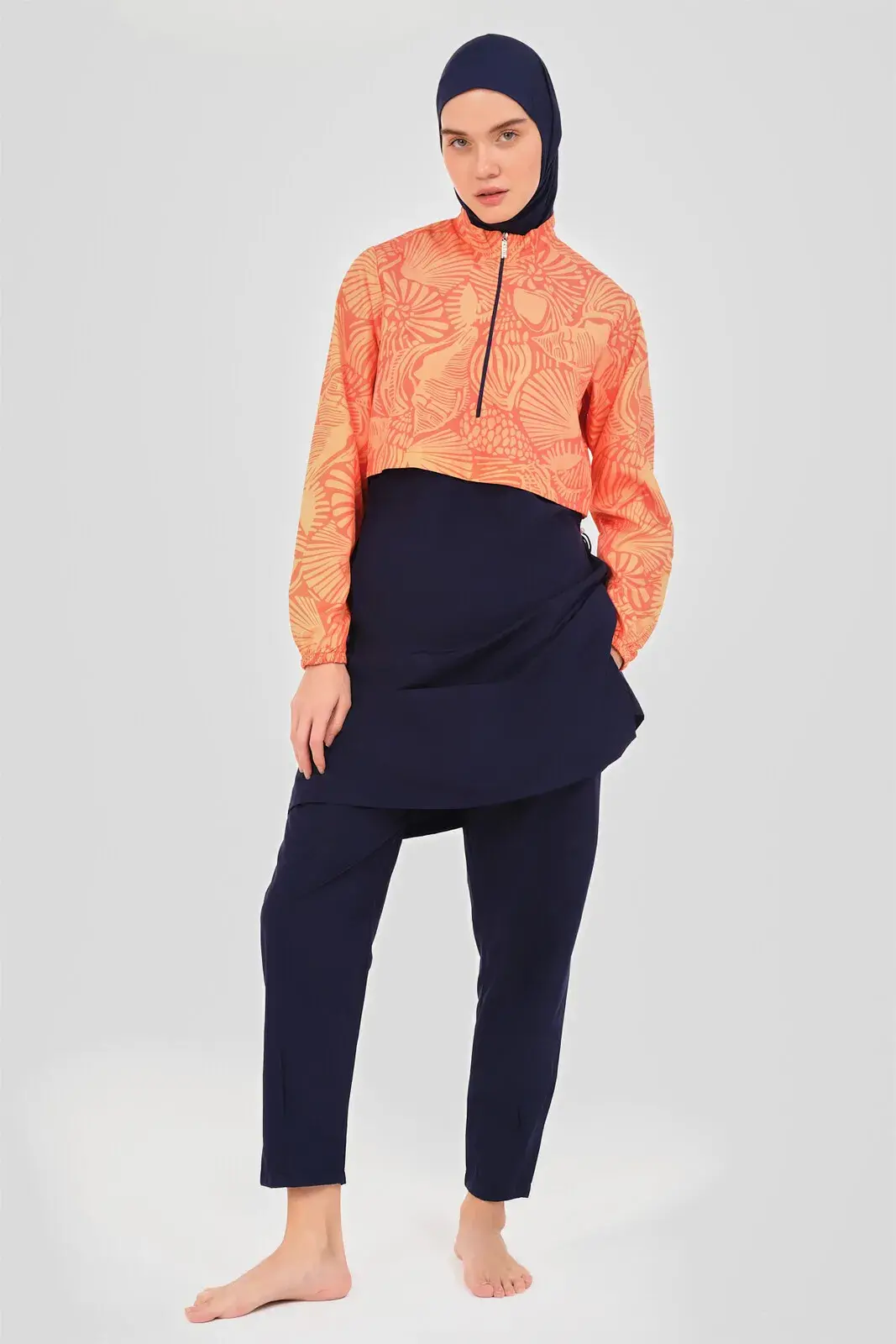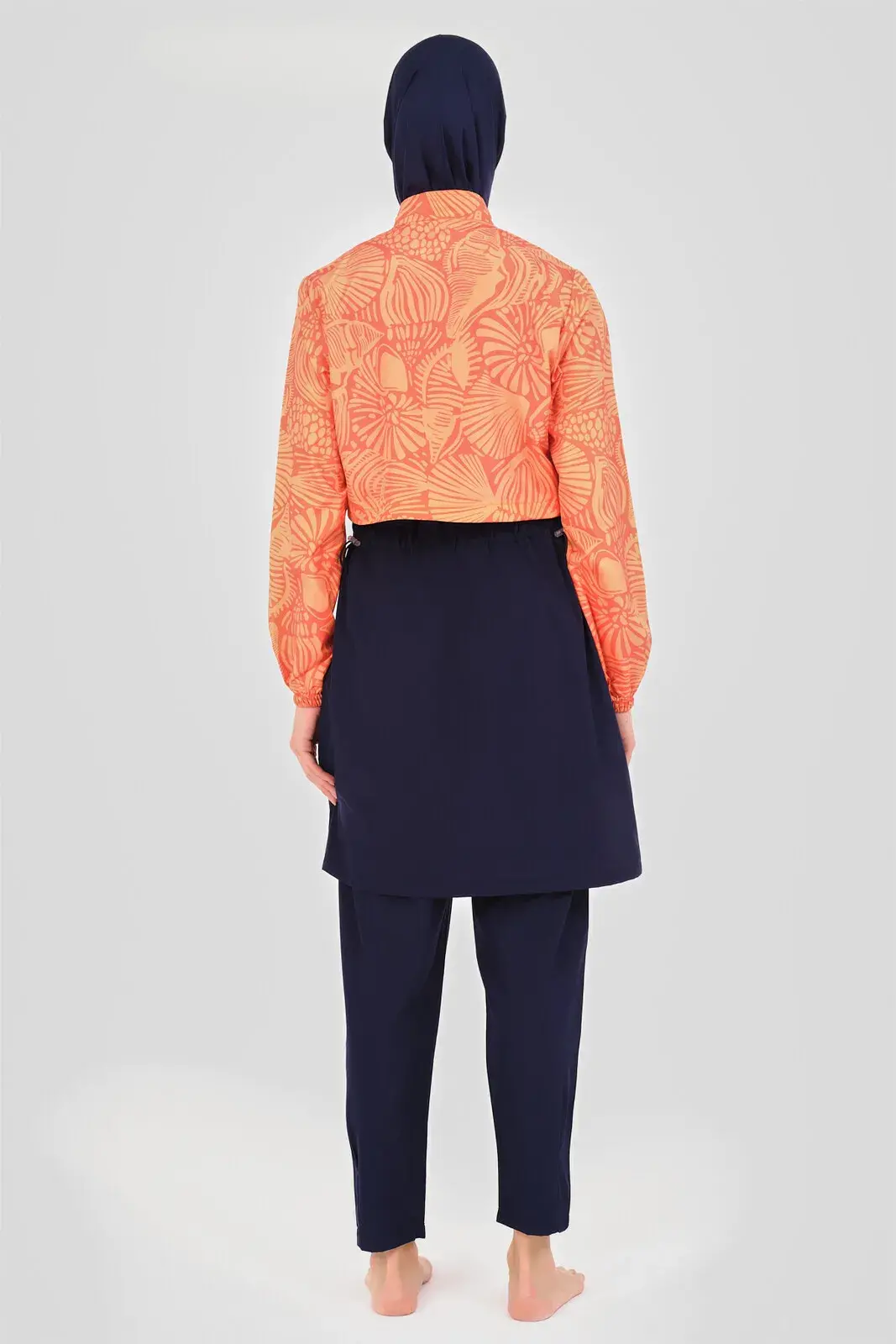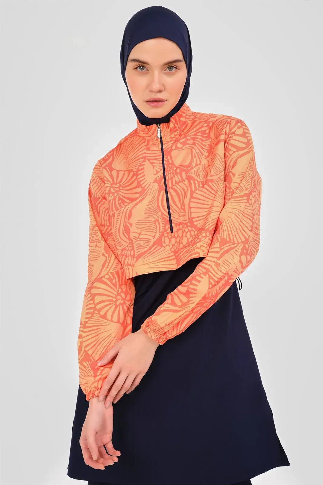 Alfasa Kadın Desenli Crop Tam Kapalı Tesettür Mayo 24300 Oranj