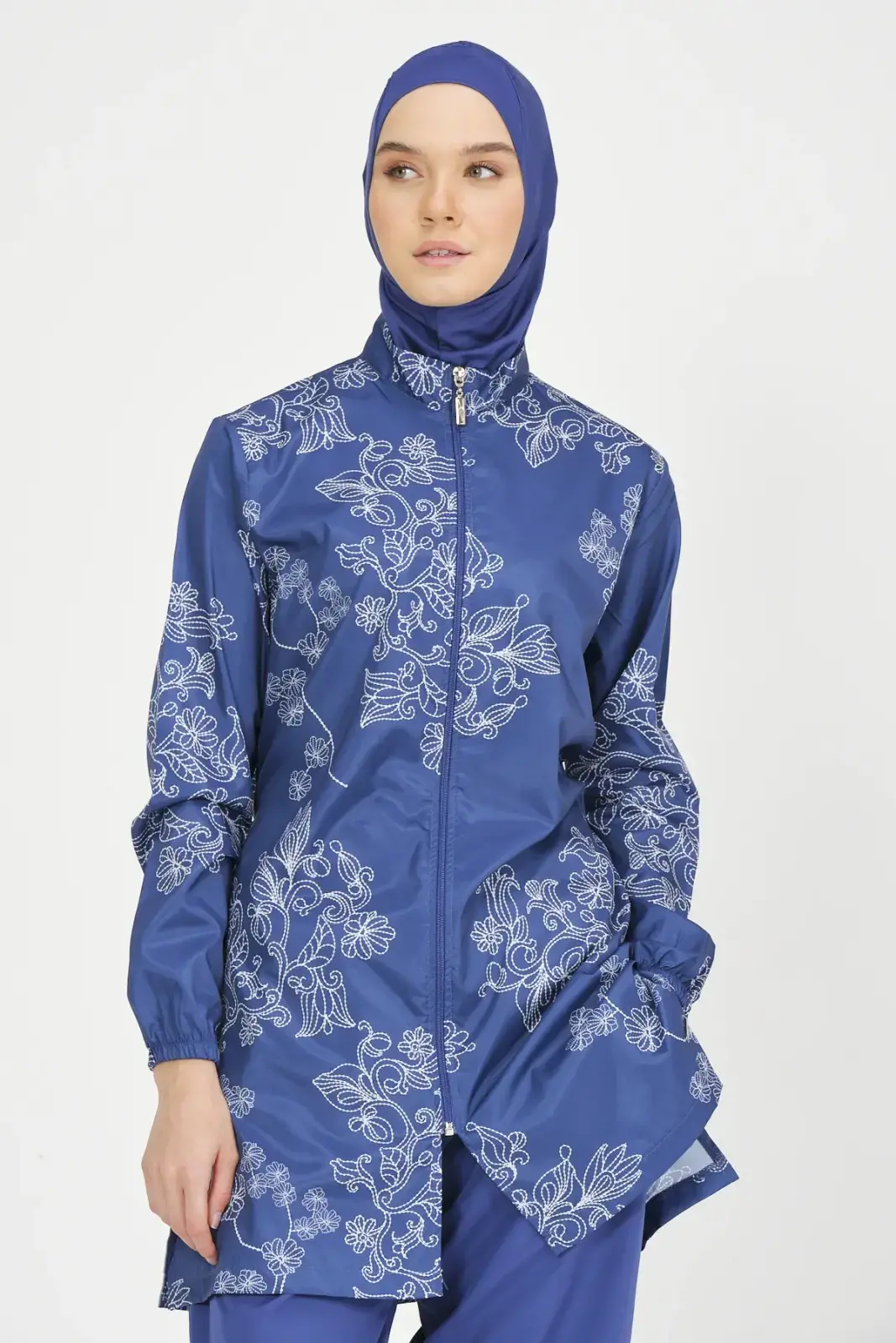 Nakış desenleriyle zenginleştirilmiş tesettür mayomuz, geleneksel dokunuşları modern bir stil ile harmanlıyor. Bu eşsiz tasarım, plaj ve havuz kenarında sıra dışı bir şıklık sunarken, kaliteli kumaşıyla da gün boyu konfor sağlıyor. Yaz gardırobunuzun vazgeçilmez parçası olacak.