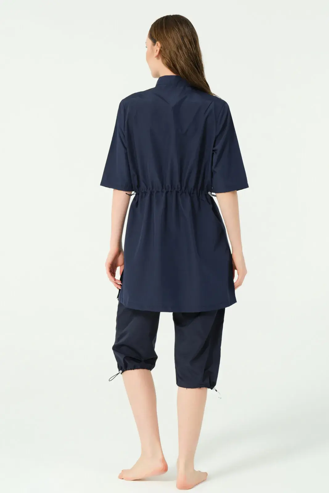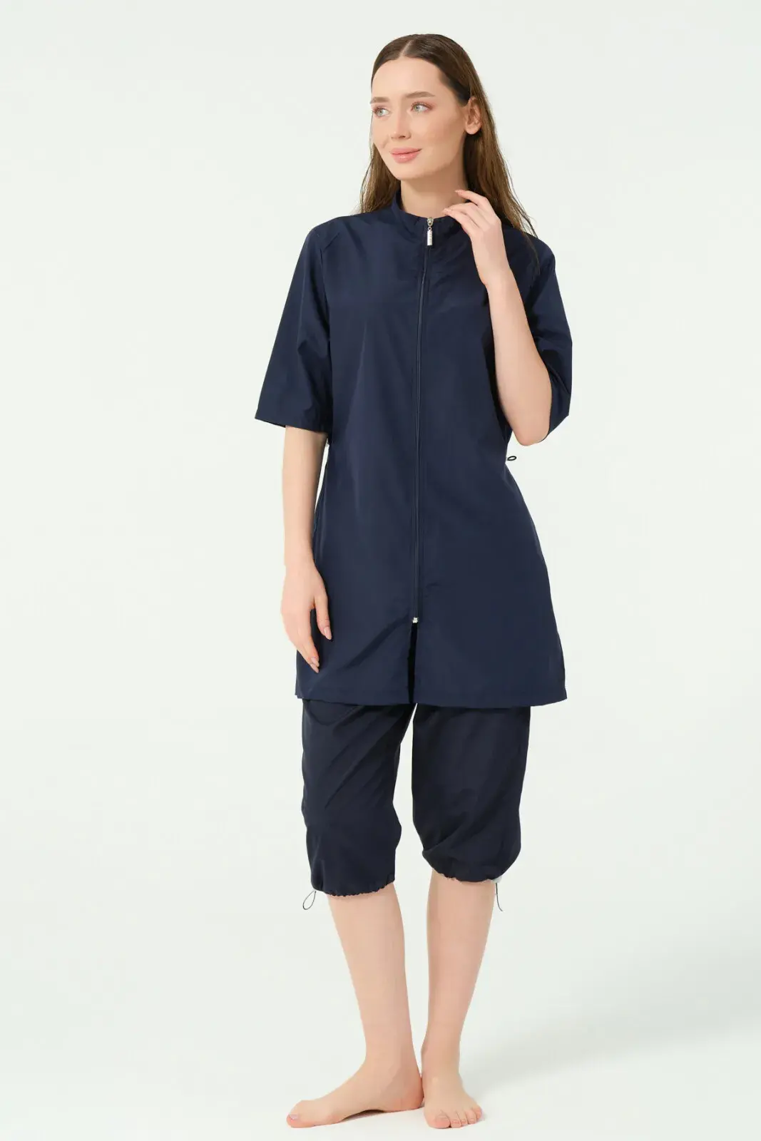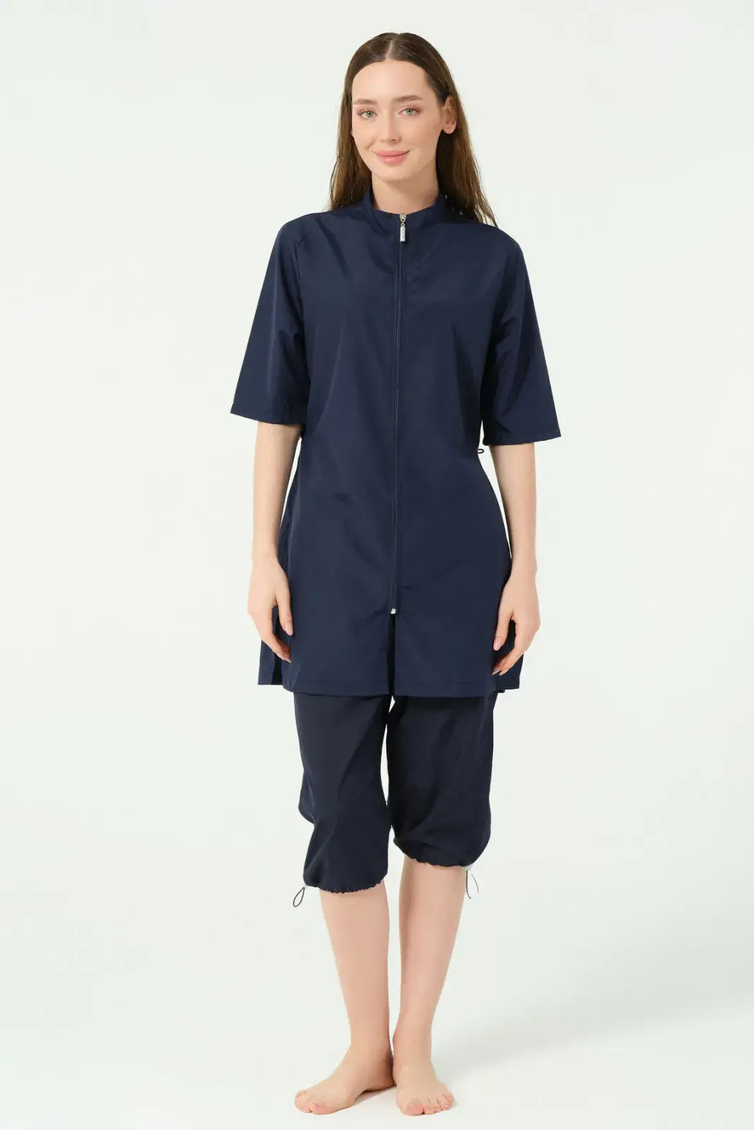 Alfasa Klasik Yarım Kol Dik Yaka Yarı Kapalı Mayo Lacivert - 25740-25