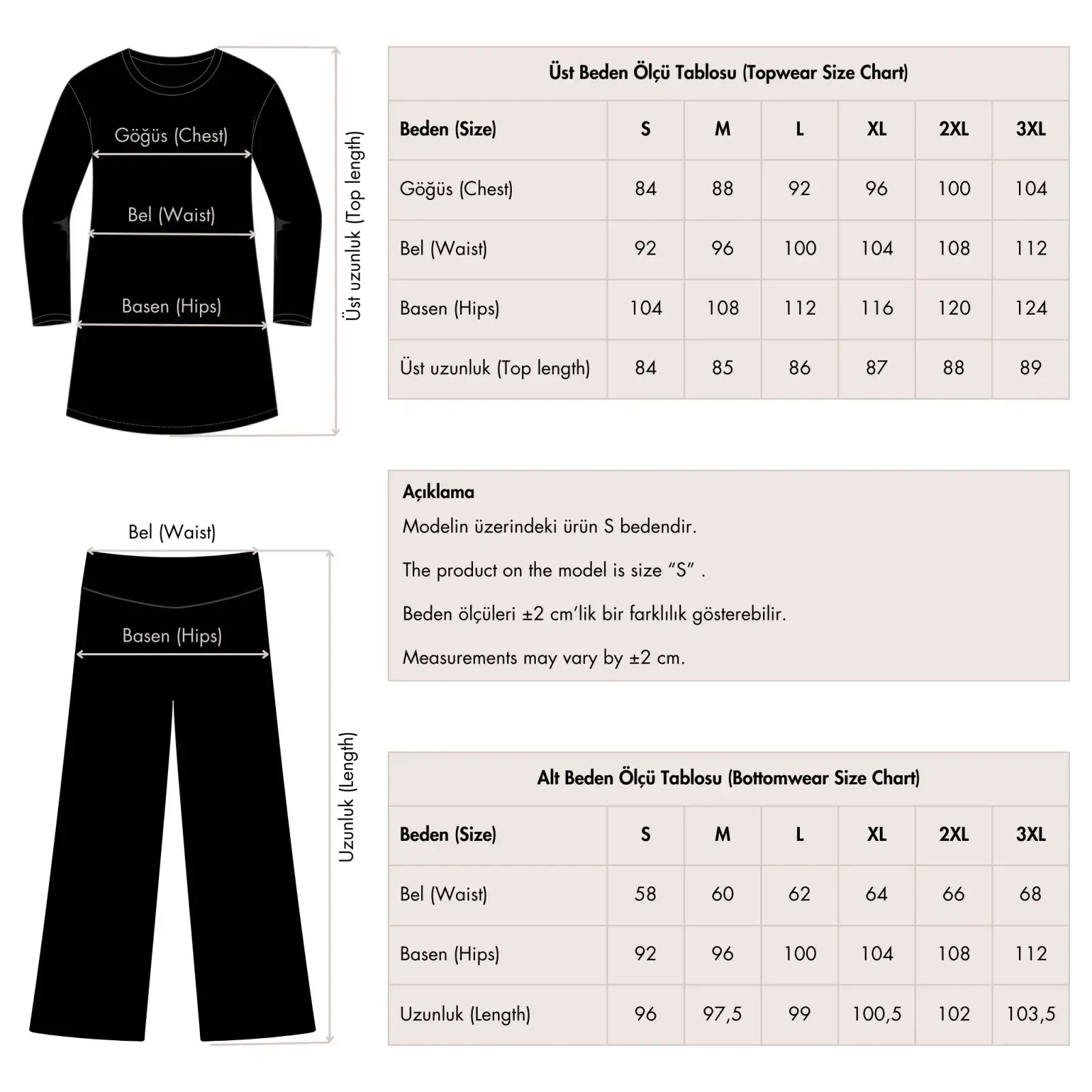 Üst: Klasik bol kalıp, uzun kollu, dik yaka