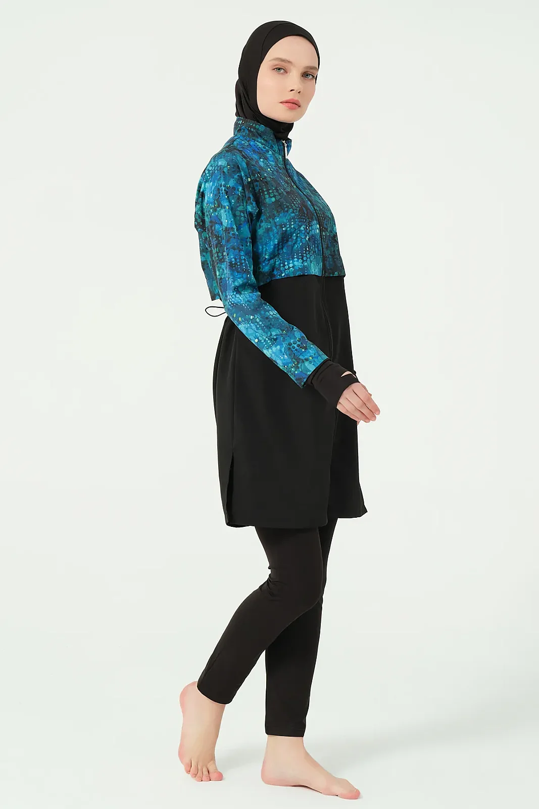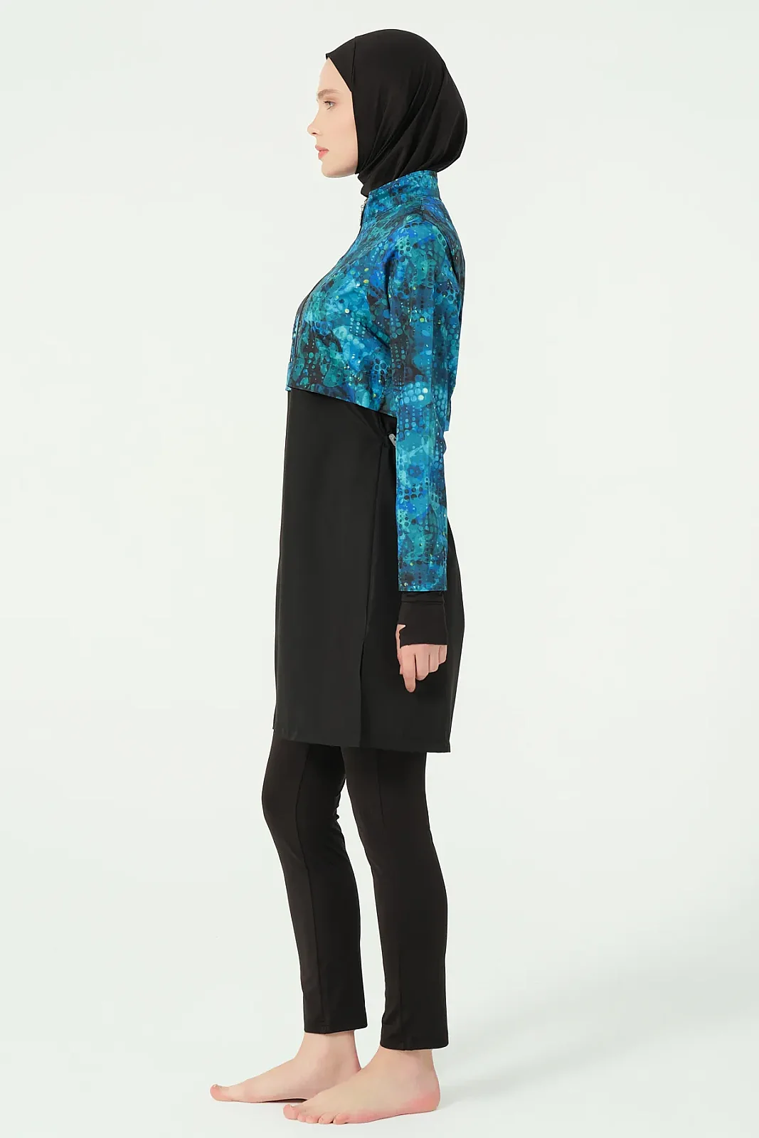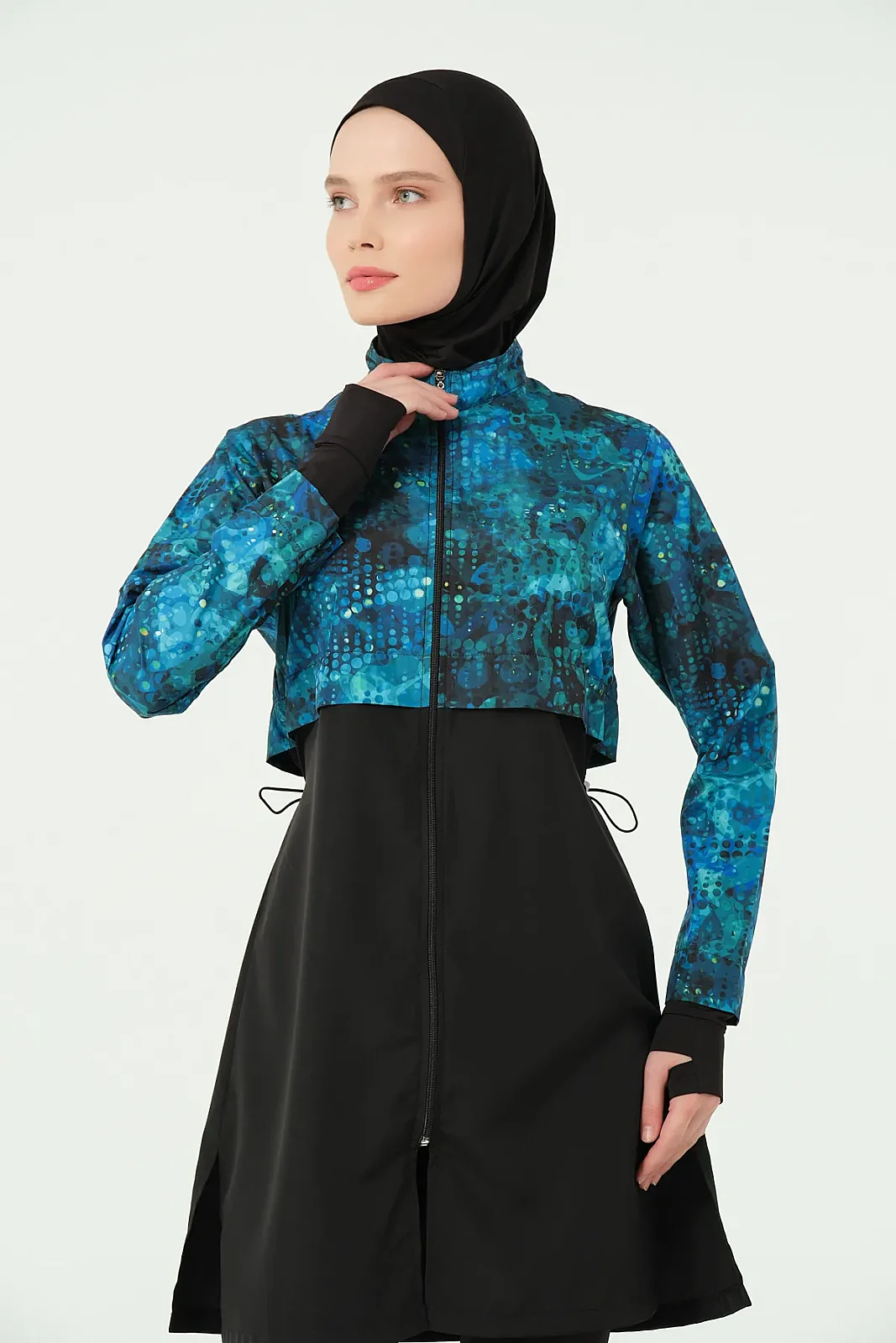 Parmak geçirmeli kol detayı ve crop görünümlü modern tasarımı ile öne çıkan Alfasa tesettür mayo modeli, battal beden seçeneği sayesinde daha rahat bir kullanım sunar. Hafif ve hızlı kuruyan kumaşı ile deniz ve havuz kullanımına uygundur.