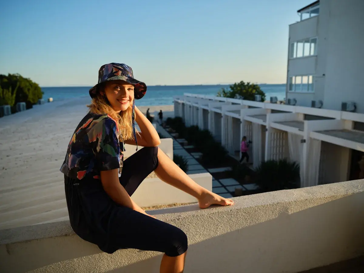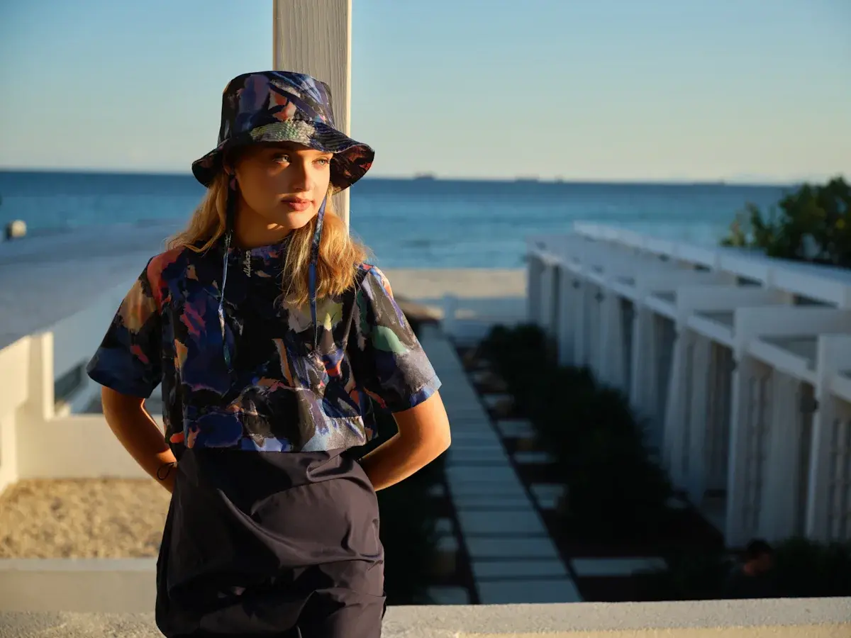 Yarım kol kesimi yaz aylarında ferah kullanım sağlarken, diz üstü taytı ile rahat hareket imkânı sunar. Bel kısmındaki lastikli yapı vücuda uyum sağlayarak konforu artırır. Takım ile uyumlu şapkası ise güneş koruması sunarken kombin bütünlüğünü tamamlar.