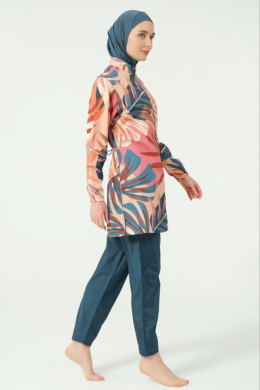 Alfasa Vanilya serisine ait bu tesettür mayo modeli, canlı desenleri ve rahat kalıbı ile yaz sezonunda hem konfor hem de dikkat çekici bir görünüm sunar. Modern çizgilere sahip tasarımı sayesinde plaj ve havuz kullanımında şıklığı destekler.
