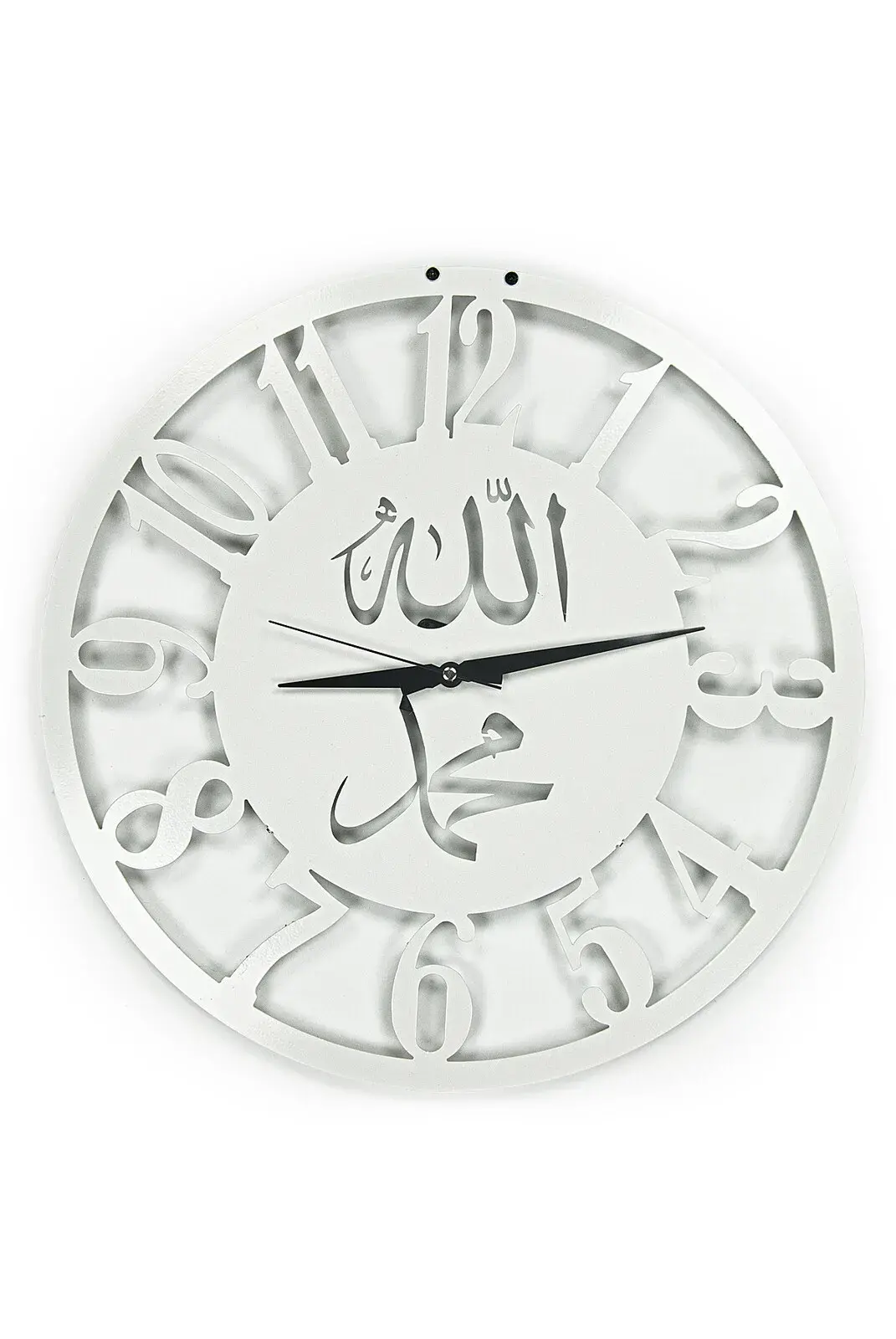 "Allah ve Muhammed" lafızlarıyla süslenmiş olan bu duvar saati, Manevi anlamı olarak evlerinde yer vermek isteyenler için anlamlı bir dekorasyon ögesi olabilir hem de şık ve zarif tasarımıyla genel iç mekân estetiğine katkı sağlamaktadır. Ürün, sağlam yapısı ve göz alıcı görünümüyle ev, ofis veya herhangi bir iç mekânın atmosferini zenginleştirecek nitelikte tasarlanmıştır.