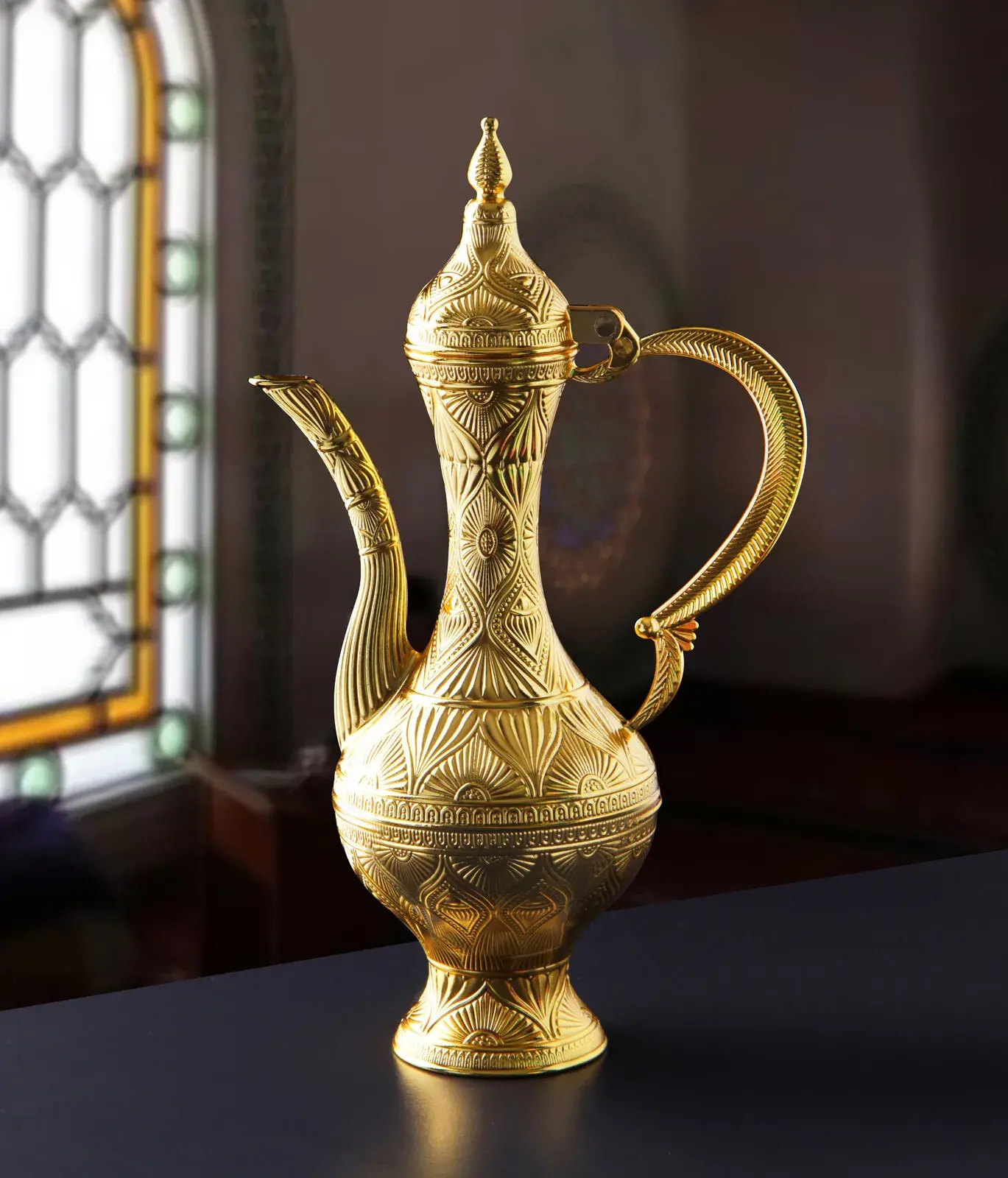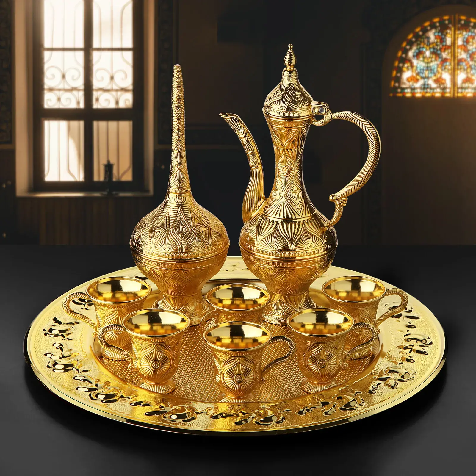 Altın Renk Dekoratif Tam Zemzem Takımı 9 Parça Güldanlık Sürahi ve Fincan Servis Takımı