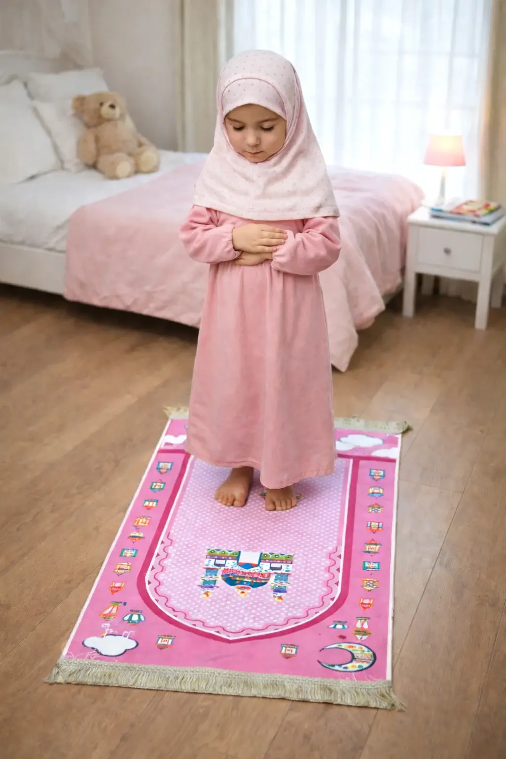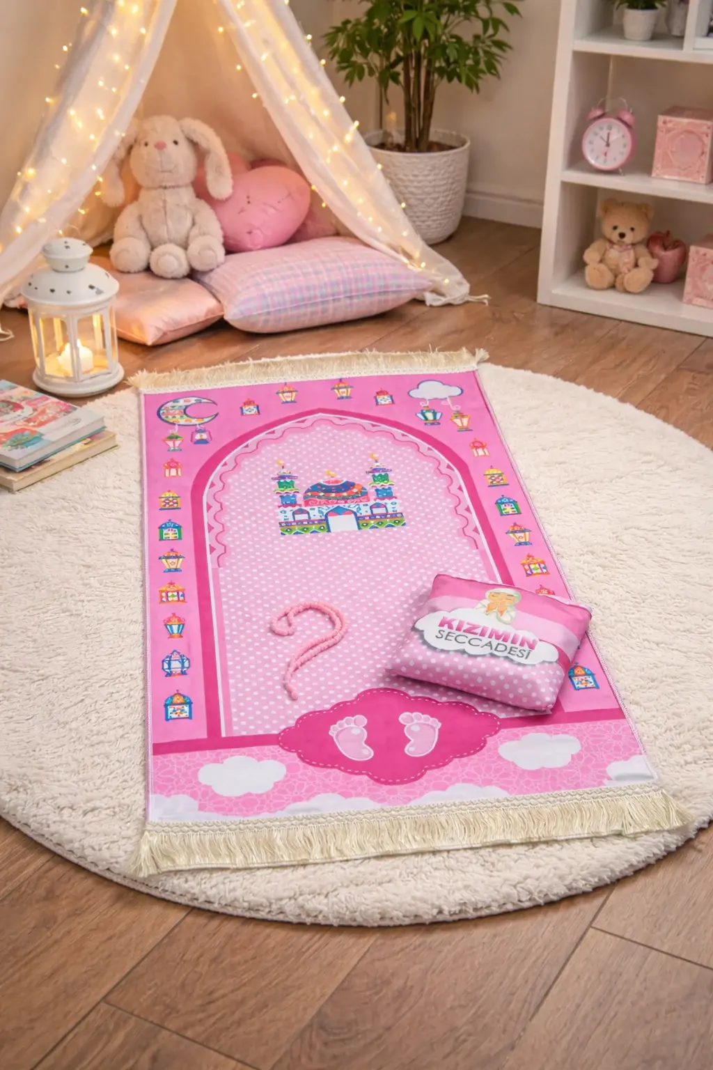 - 1 adet çocuk seccadesi (renkli ve çocuklara özel desenli)