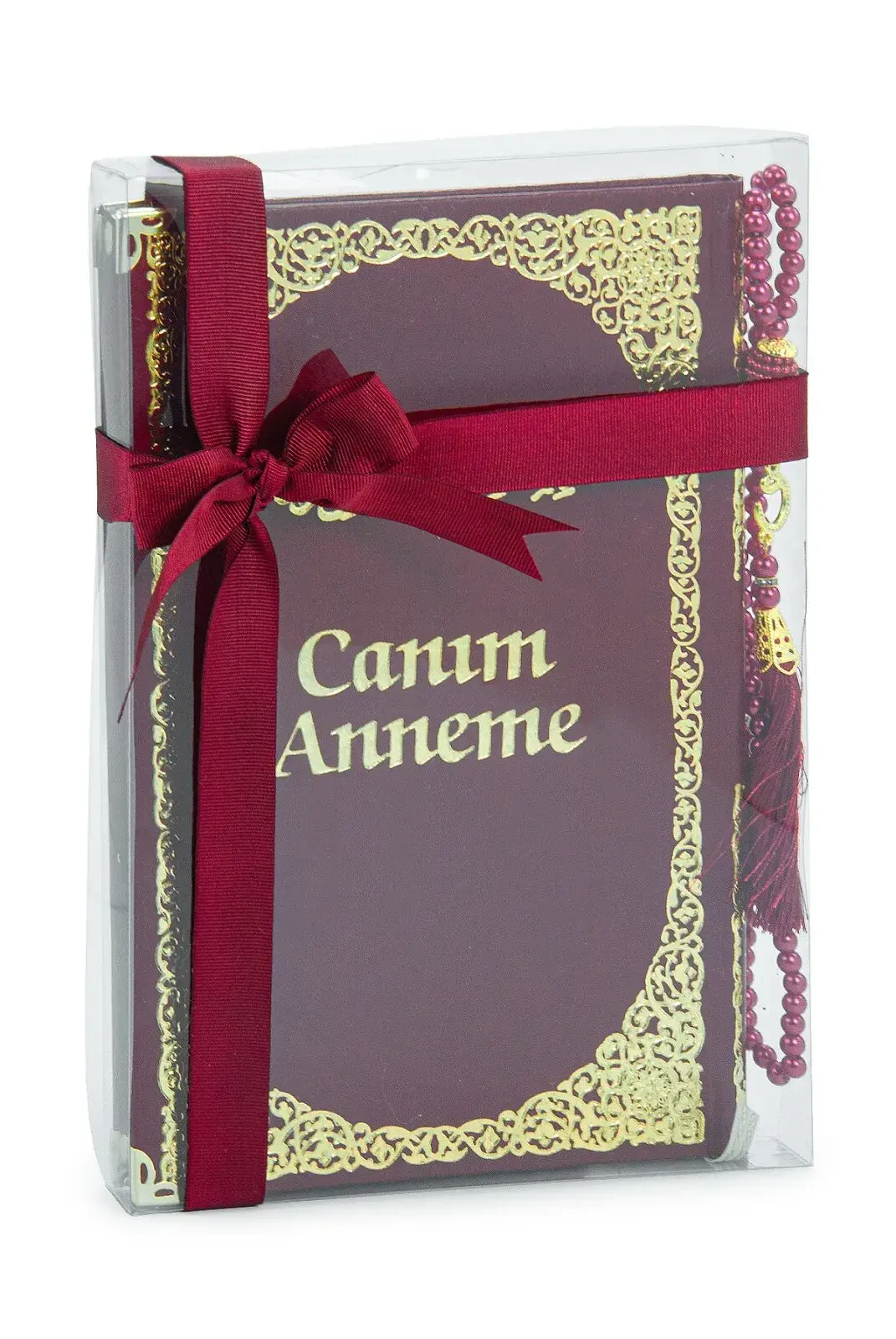 Anneye Hediye Kutulu İnci Tesbihli Ciltli Yasin Kitabı Seti Bordo