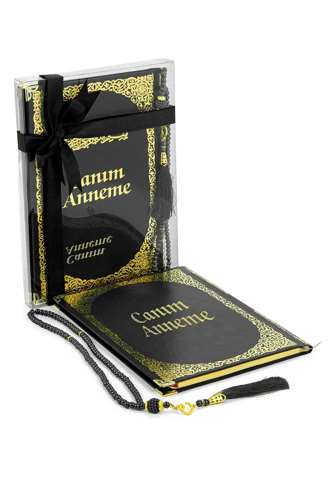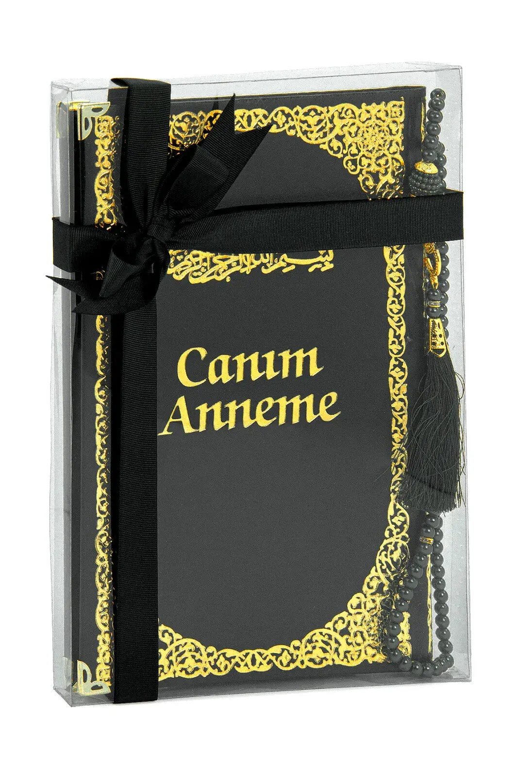 Anneye Hediye Kutulu İnci Tesbihli Ciltli Yasin Kitabı Seti Siyah