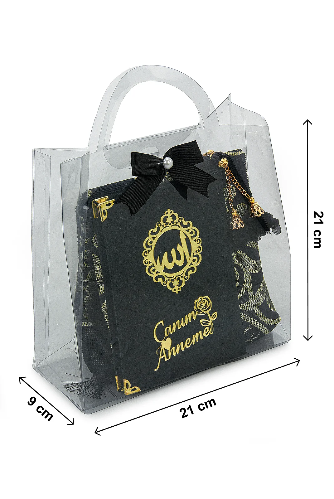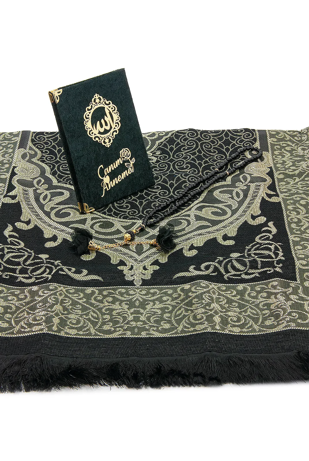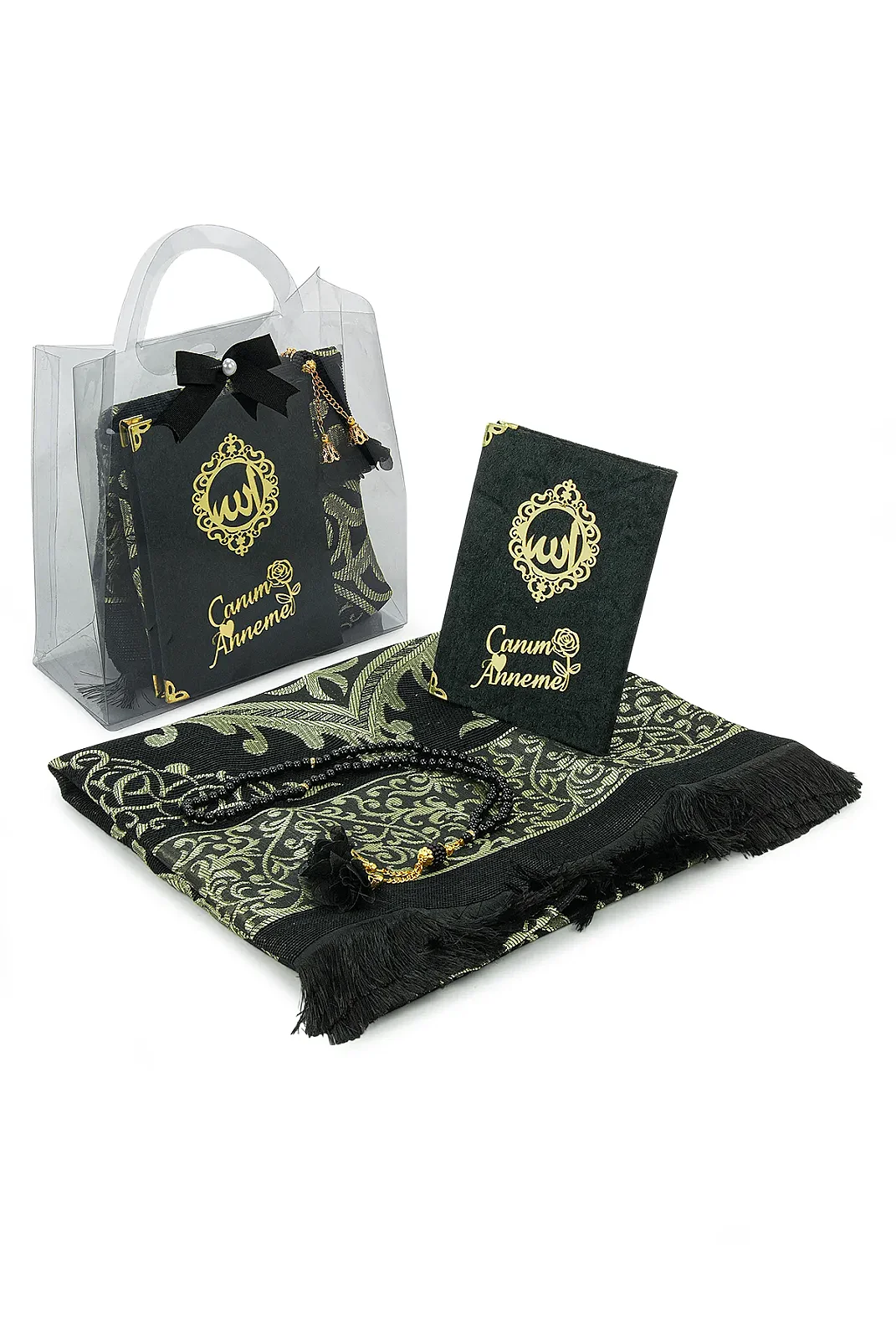 Anneler Gününe Özel Çantalı Kadife Kaplı Yasin Kitabı Tesbih Seccade Seti Siyah