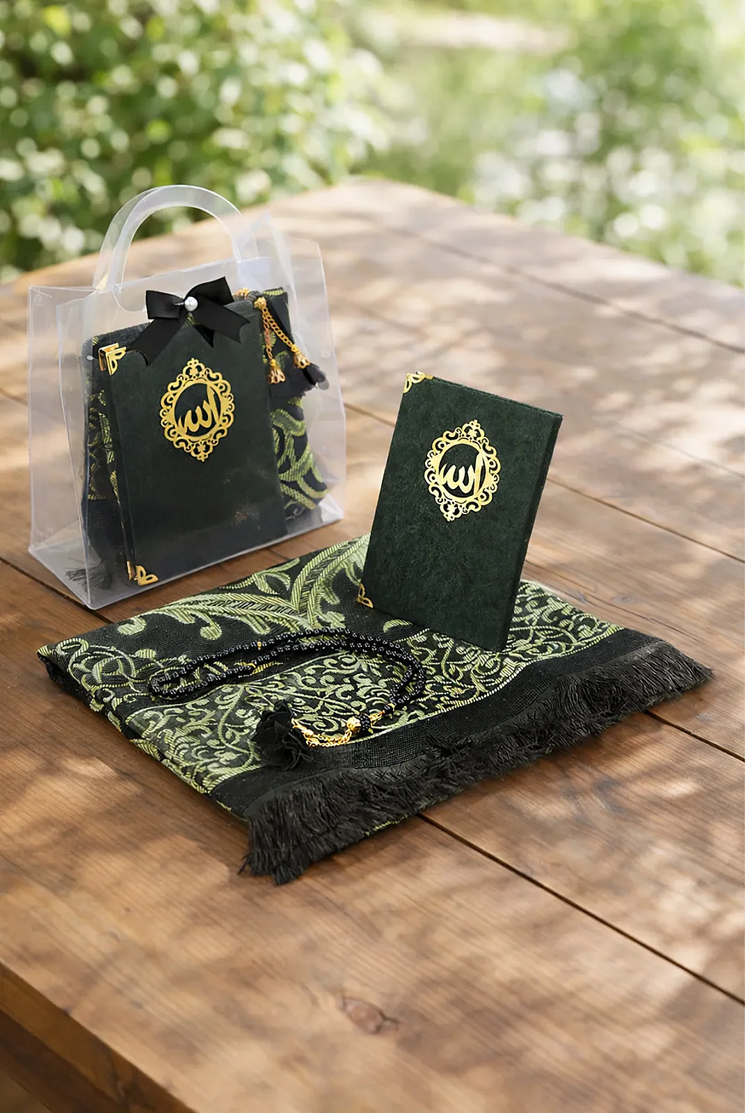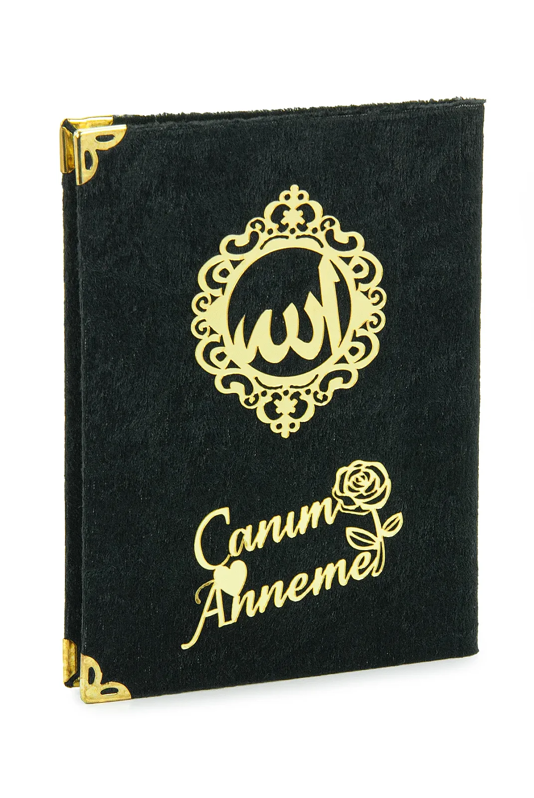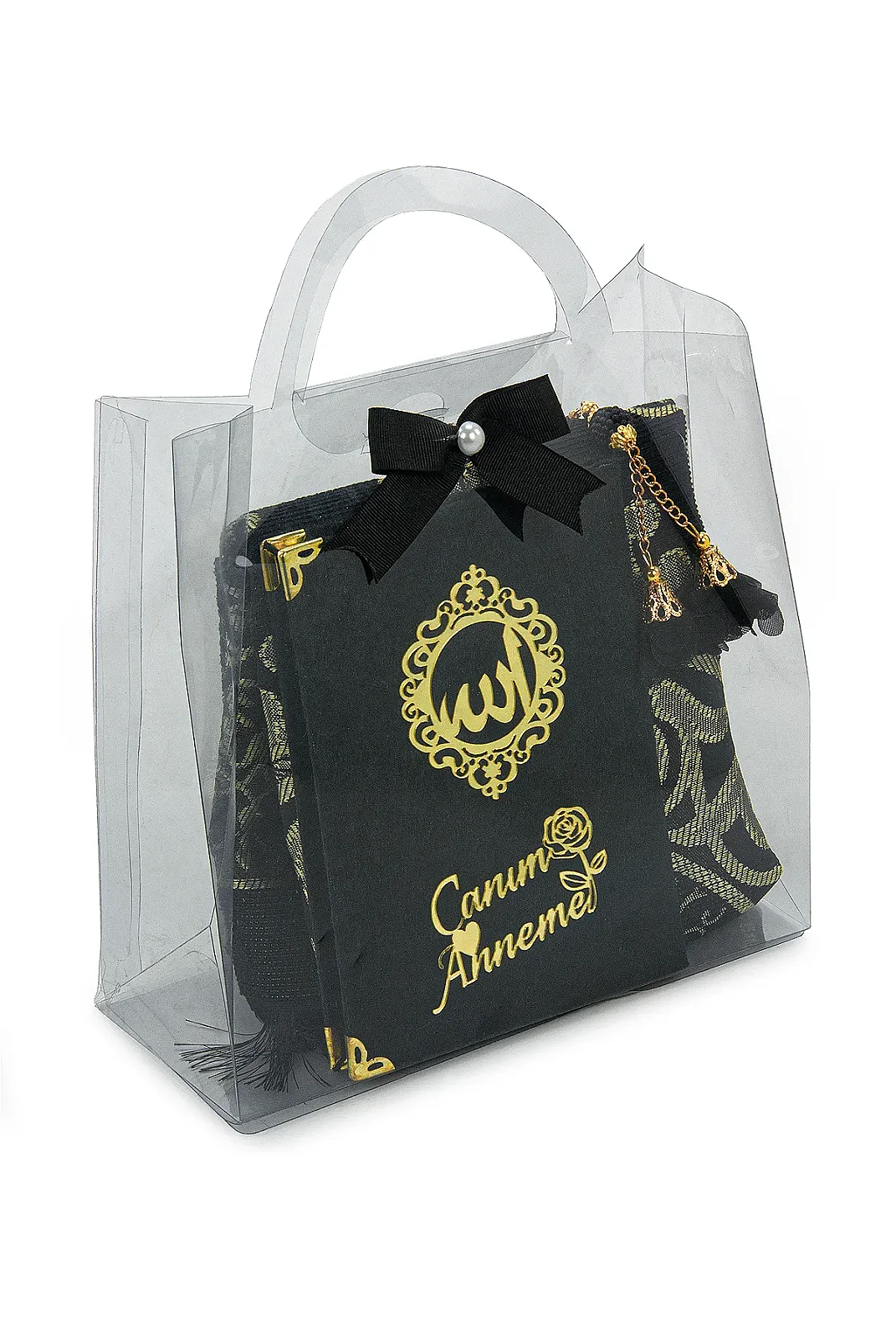 Anneler Gününe Özel Çantalı Kadife Kaplı Yasin Kitabı Tesbih Seccade Seti Siyah