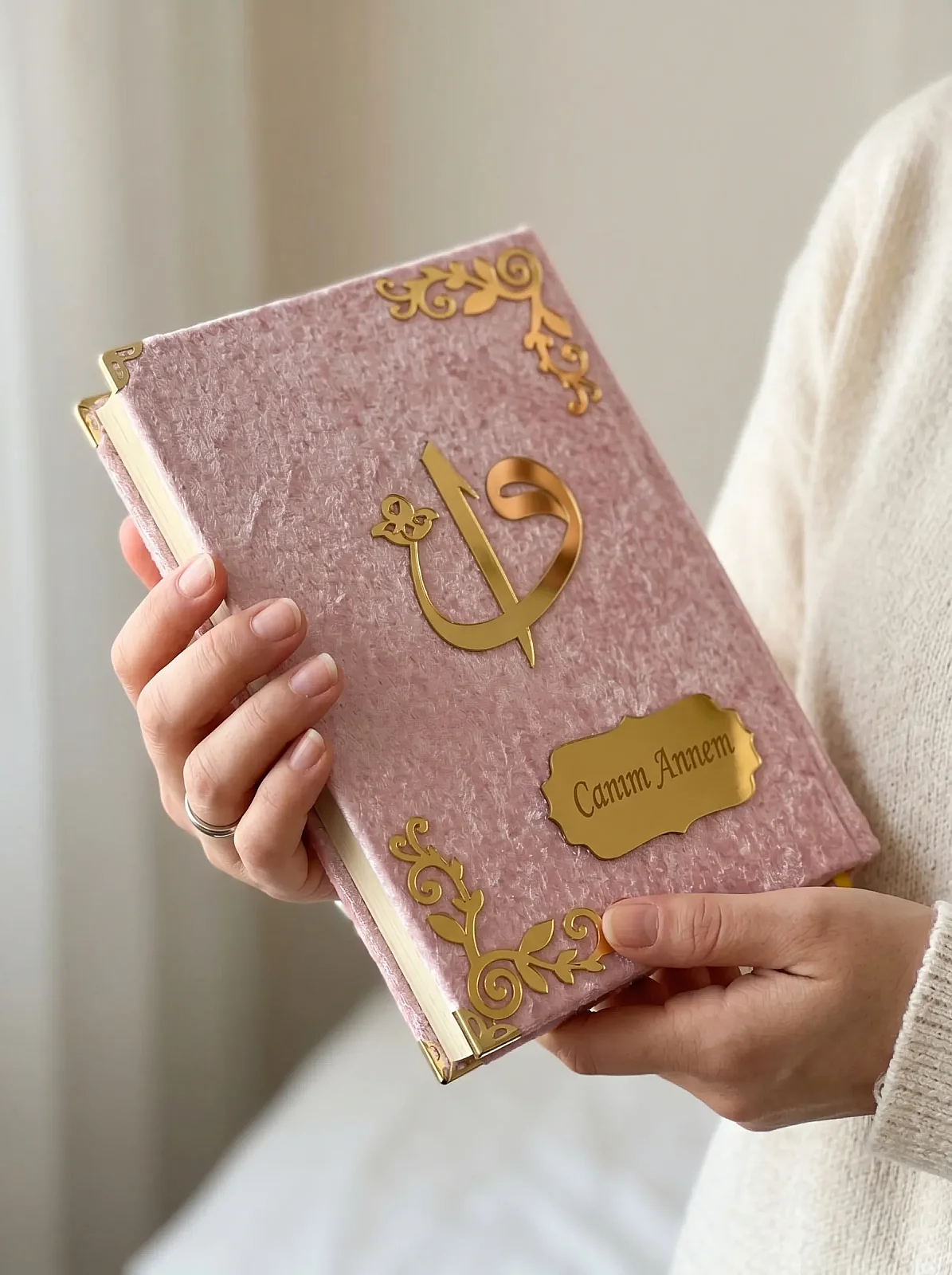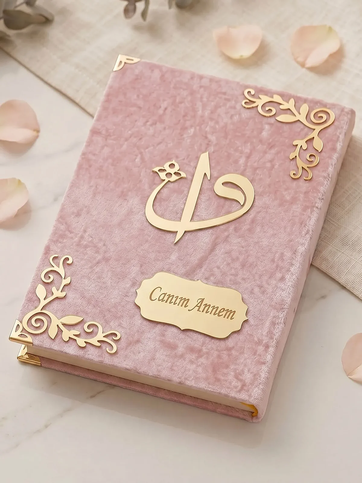 - Kapak: Kadife kaplama, pleksi “Canım Annem” detaylı
