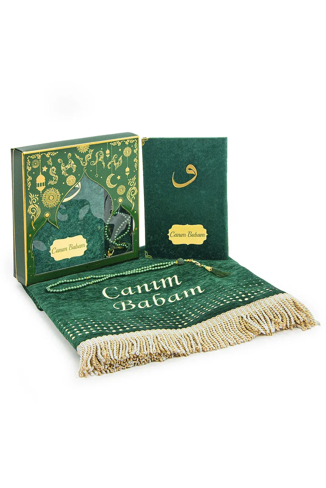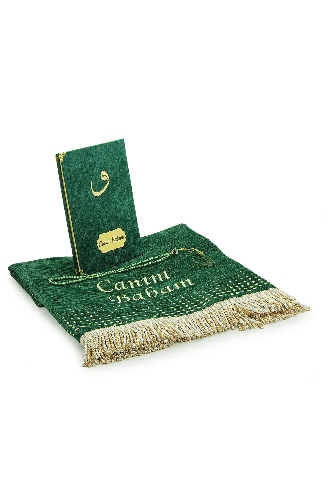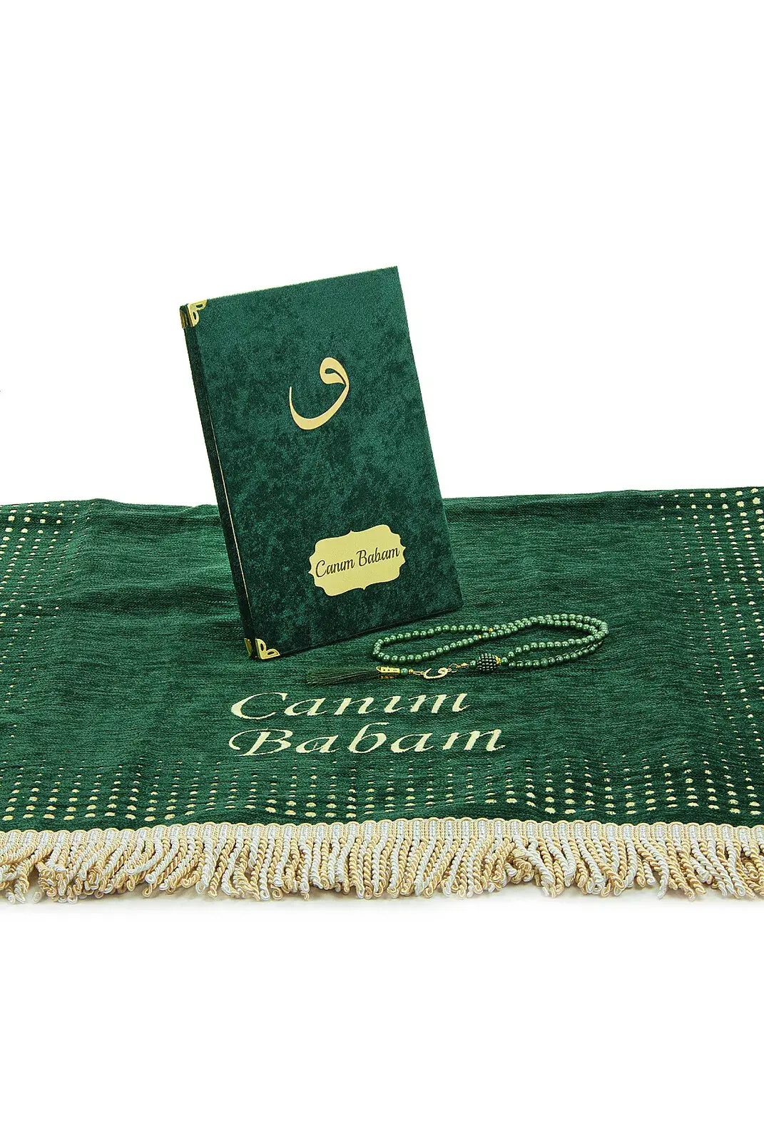 Babalar Günü Yasin Kitabı Tesbih Kişiye Özel İsimli Seccade Seti Yeşil