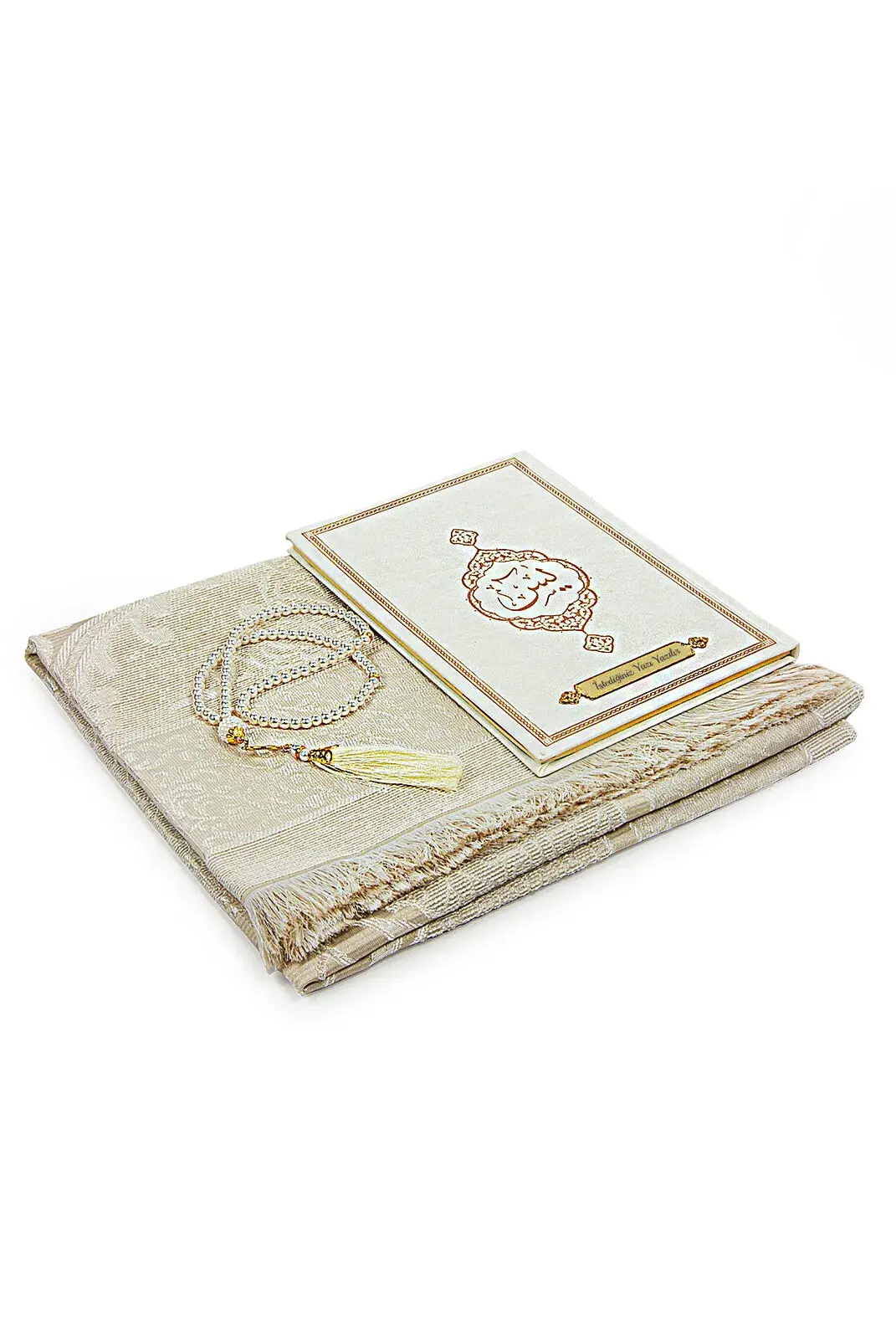 Beyaz Çeyizlik Seccade Seti Gelin Bohçasına Uygun Dini Hediyelik İsme Özel Yasin Kitabı