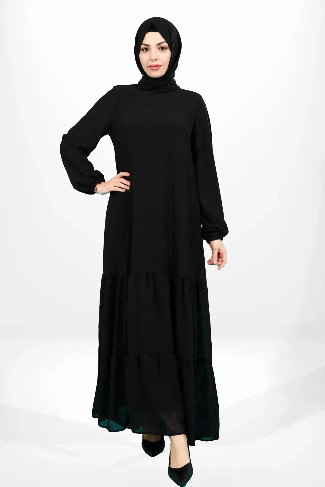 BEYZA 5601-25 SİYAH ETEĞİ FIRFIRLI KOLU LASTİKLİ ELBİSE FERACE