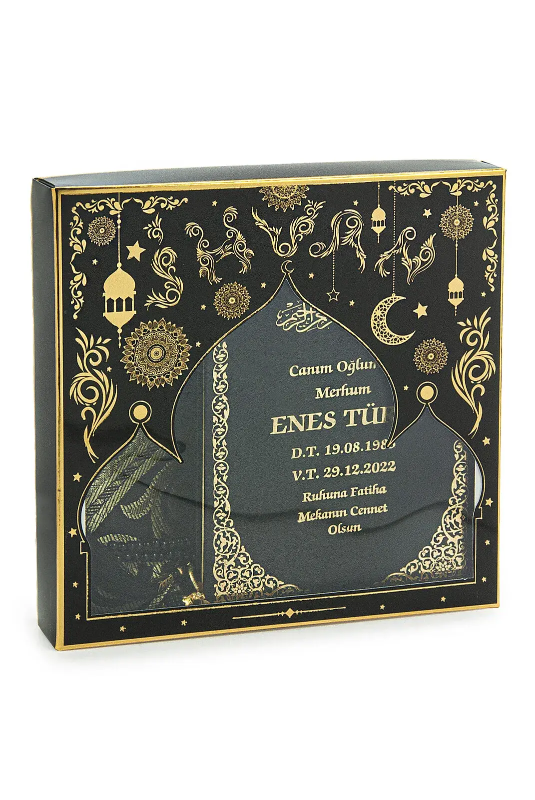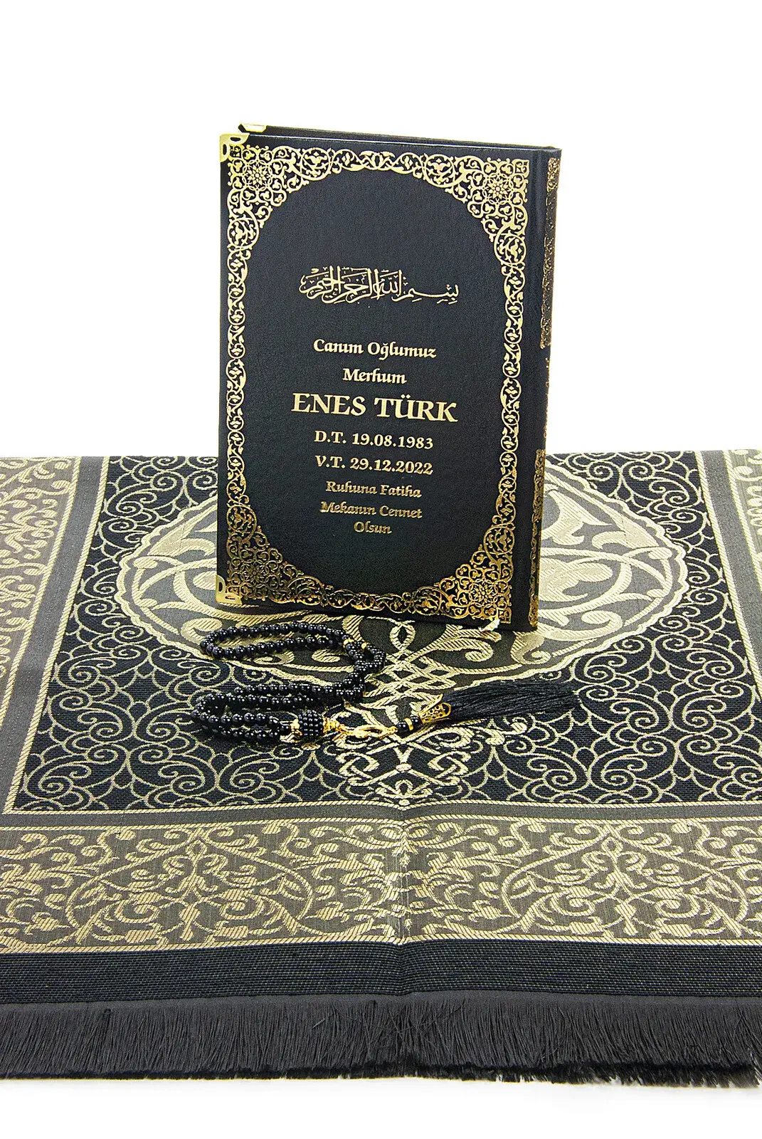 Black 50 Name Printed Leather Bound Medium Size Yasin Book Prayer Mat Set Mevlit Gift