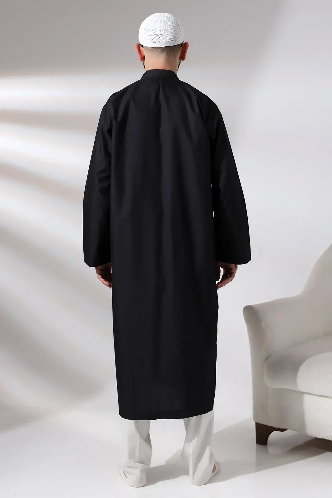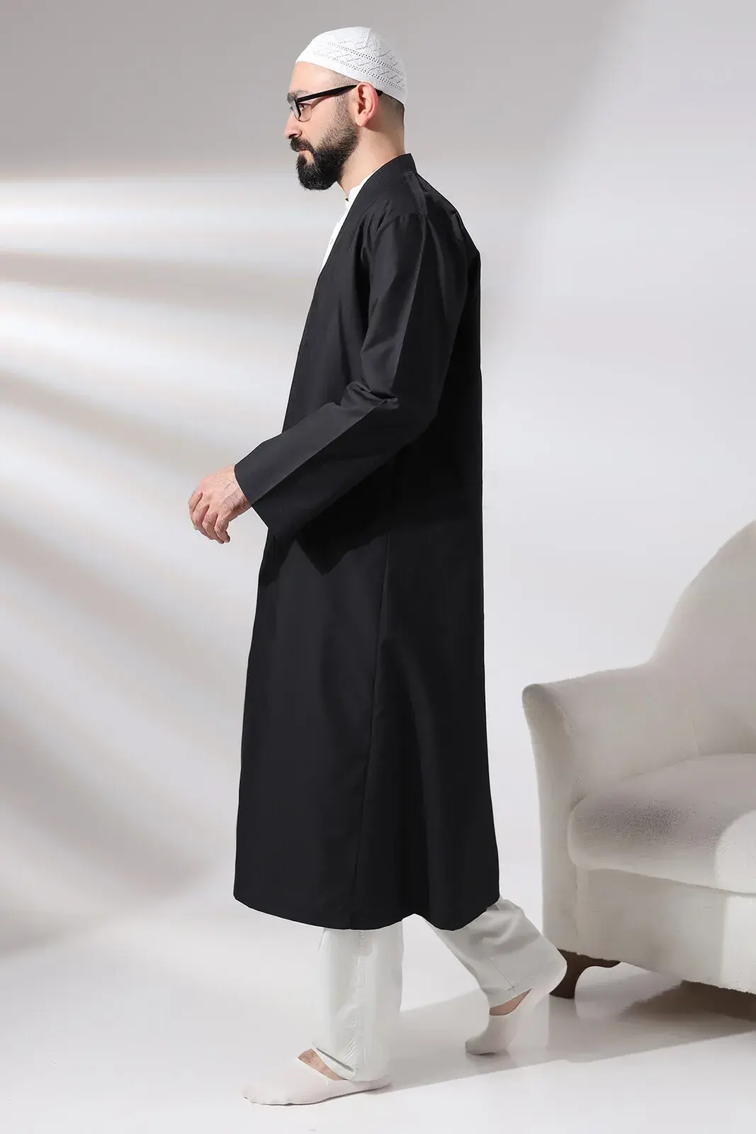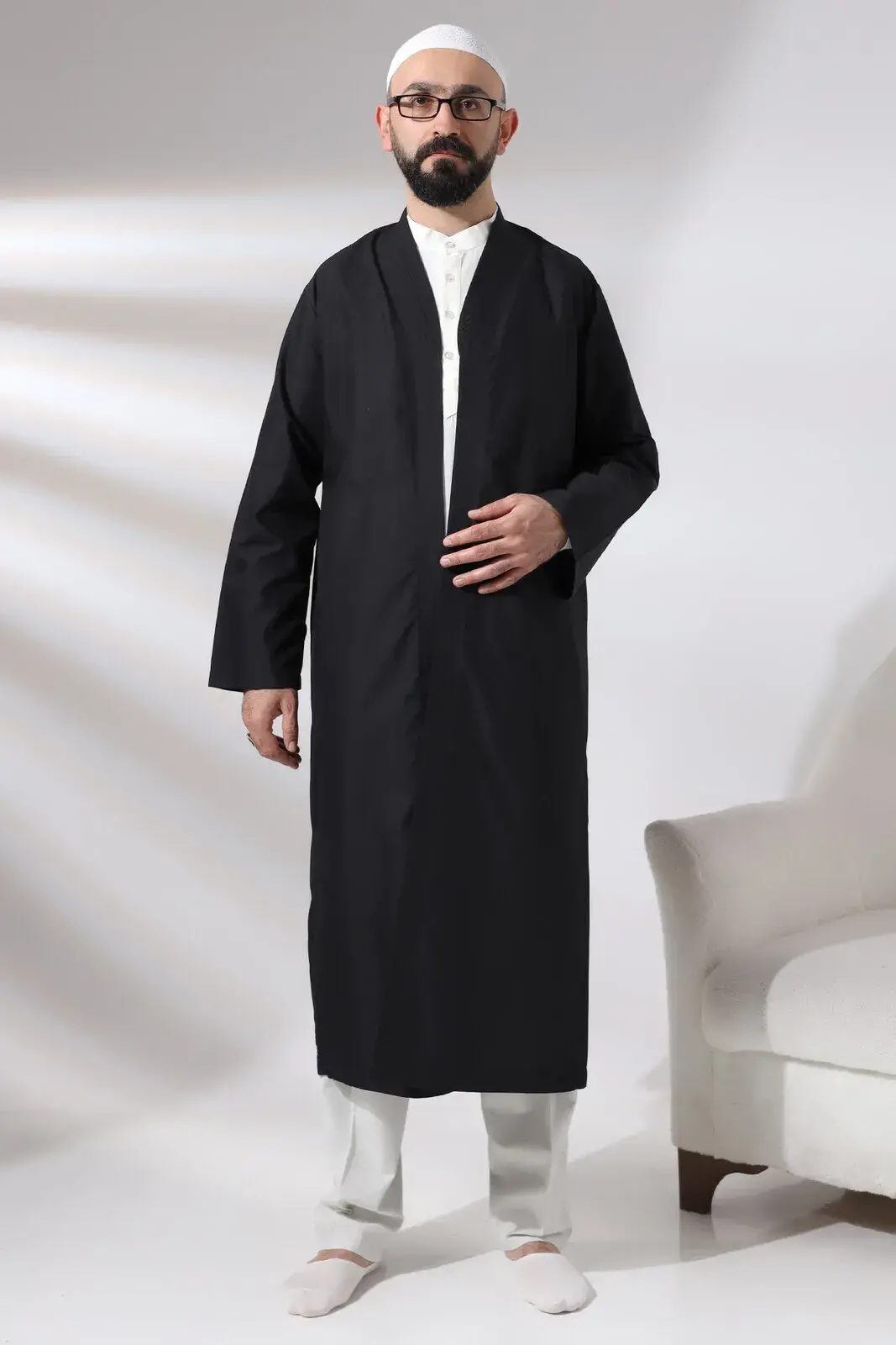 Black Men's Prayer Robe V-Neck Buttonless Open Front Prayer Robe