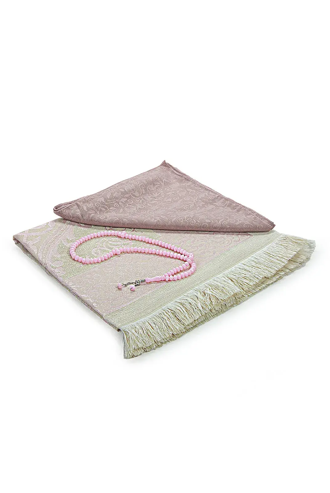 Bohçaya ve Mevlide Uygun Başörtülü Seccade Seti - Tesbihli - Pembe