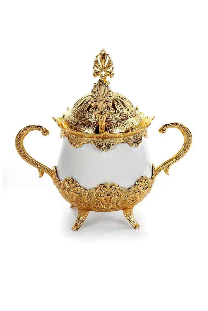 Busem Porcelain Round Sugar Bowl Turkish Delight Holder Gold