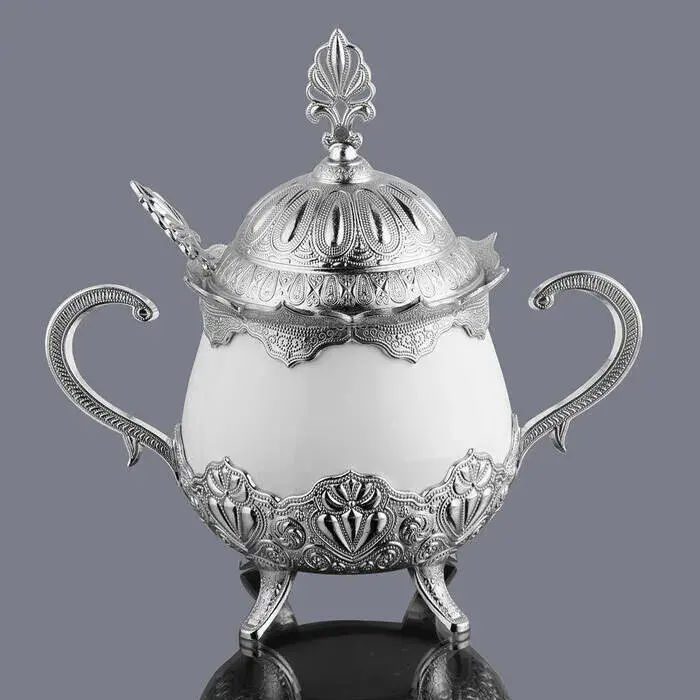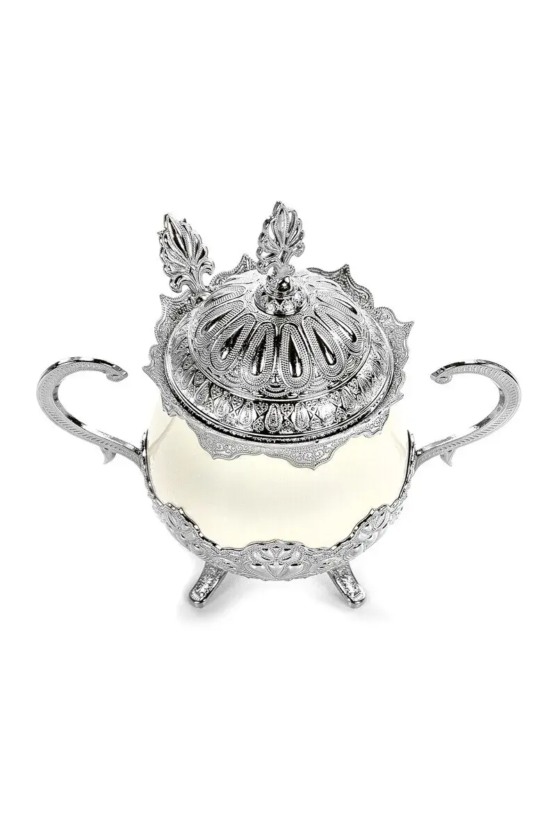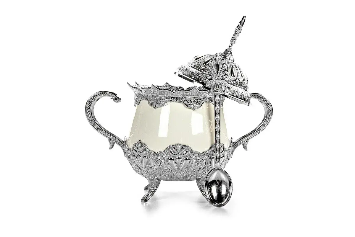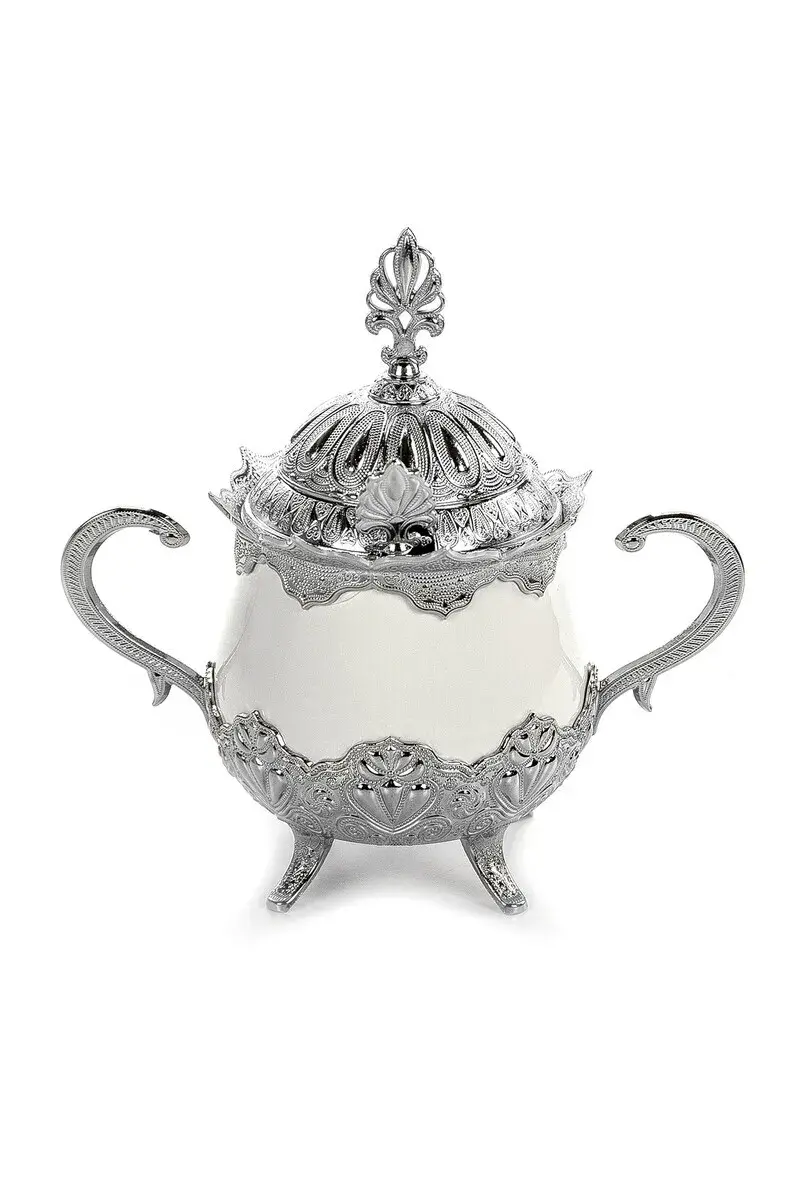 Busem Porcelain Round Sugar Bowl Turkish Delight Holder Silver