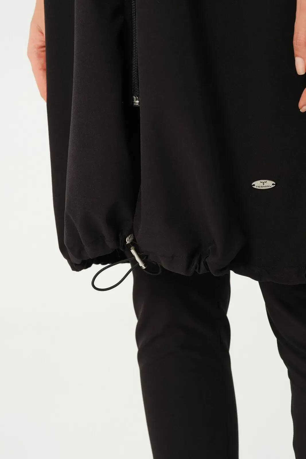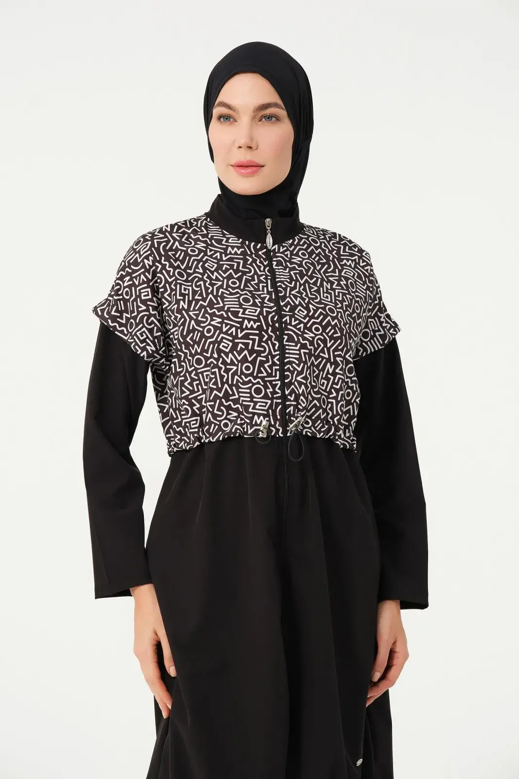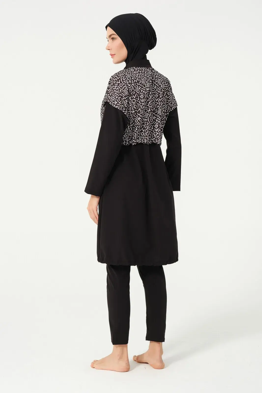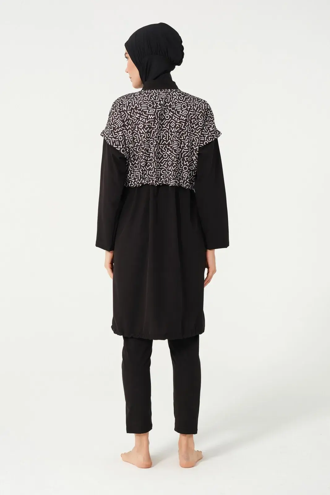 Büyük Beden Crop Detaylı Sporcu Tam Kapalı Tesettür Mayo 3015-25 Siyah