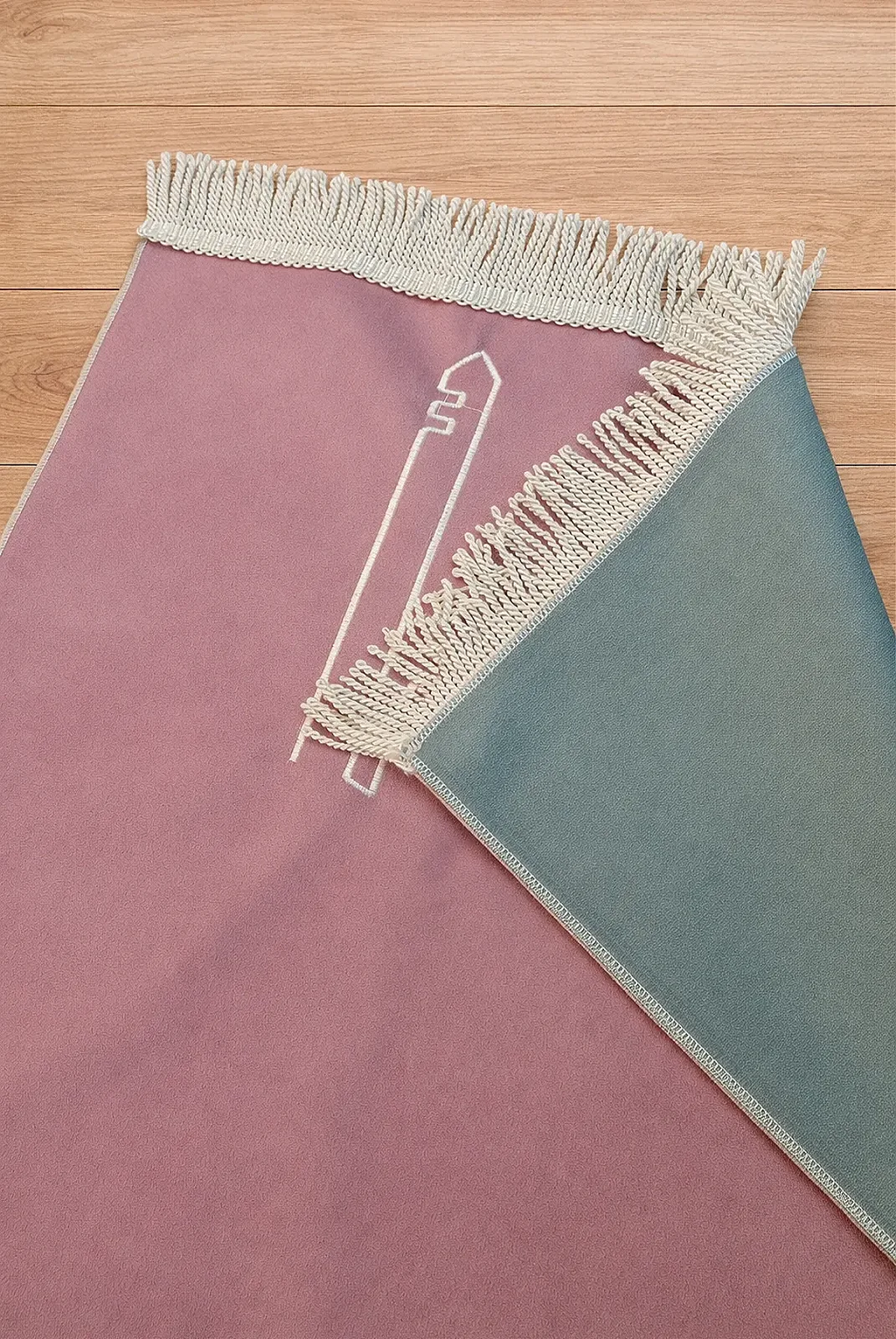 Kadife dokulu yüzeyi yumuşak ve konforlu bir kullanım sunarken, saçak detayları ürüne şık bir görünüm kazandırır. Cami motifli modern tasarımı sayesinde hem günlük kullanım hem de özel günlerde hediye amacıyla tercih edilebilir.