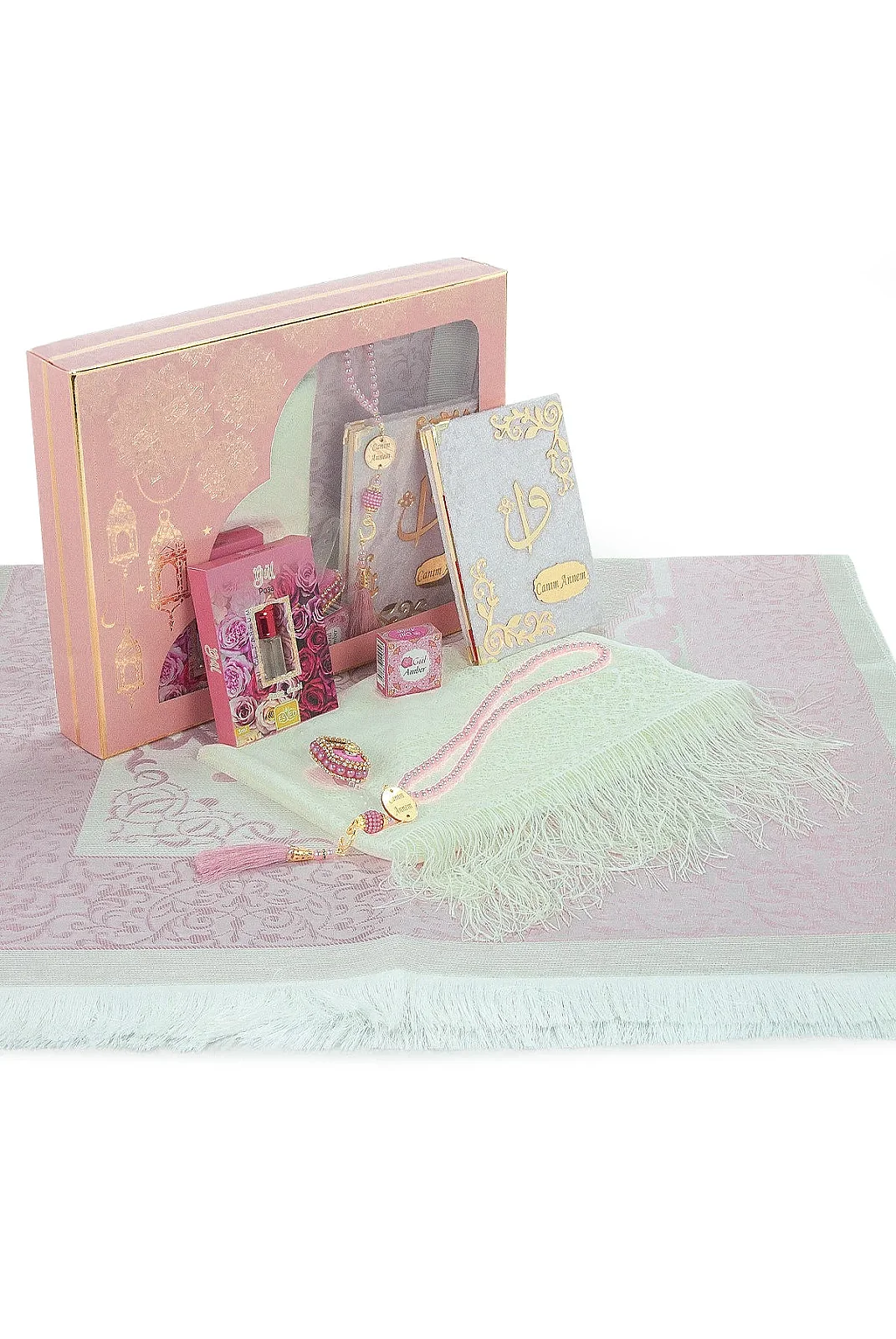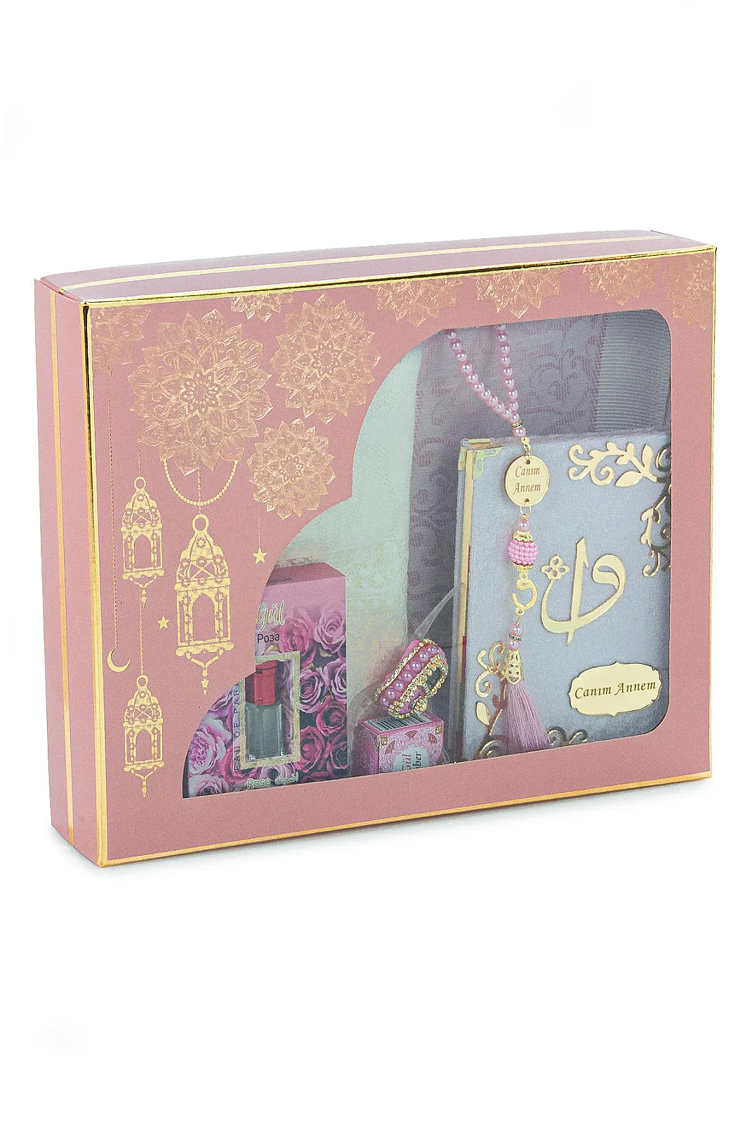 Canım Annem Hediye Seti, annelere özel düşünülmüş manevi değeri yüksek ve kullanışlı bir hediye seçeneğidir. Kadife seccade, çanta boy Yasin kitabı, 99’lu inci görünümlü tesbih, zikirmatik, alkolsüz gül esansı ve kutulu alkolsüz gül amber kokusundan oluşan bu özel set; Anneler Günü, doğum günü, mevlüt ve farklı özel günlerde anlamlı bir hediye alternatifi sunar.