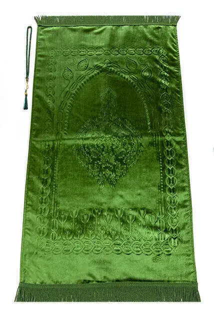 Çeyizlik Kutulu Astarlı Süngerli Hediyelik Kalın Kadife Seccade Yeşil
