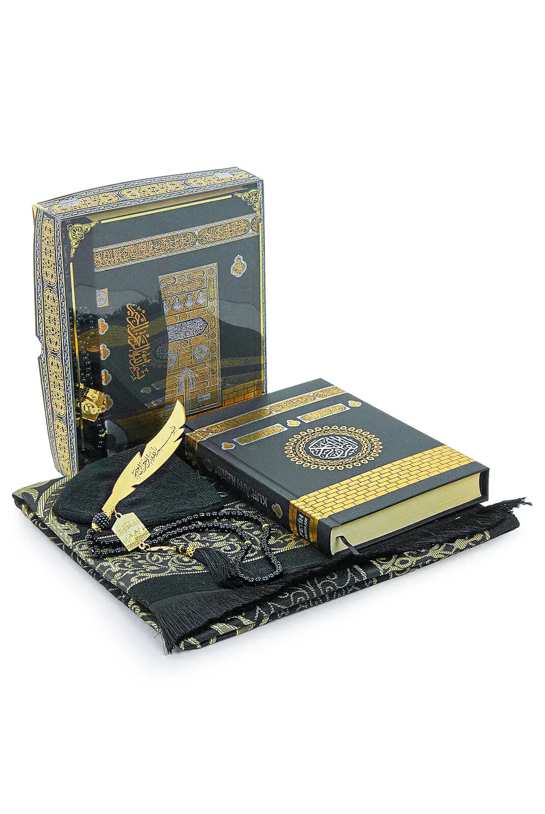 Çeyizlik Seccade Seti Dini Kutulu Damat Bohçasına Uygun Kabeli Kuranı Kerim Seti
