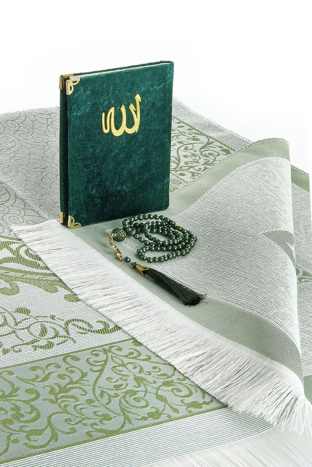 Çeyizlik Seccade Seti Lüks İbadet Seti - Yeşil Renk