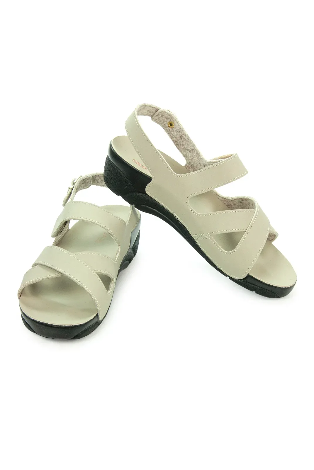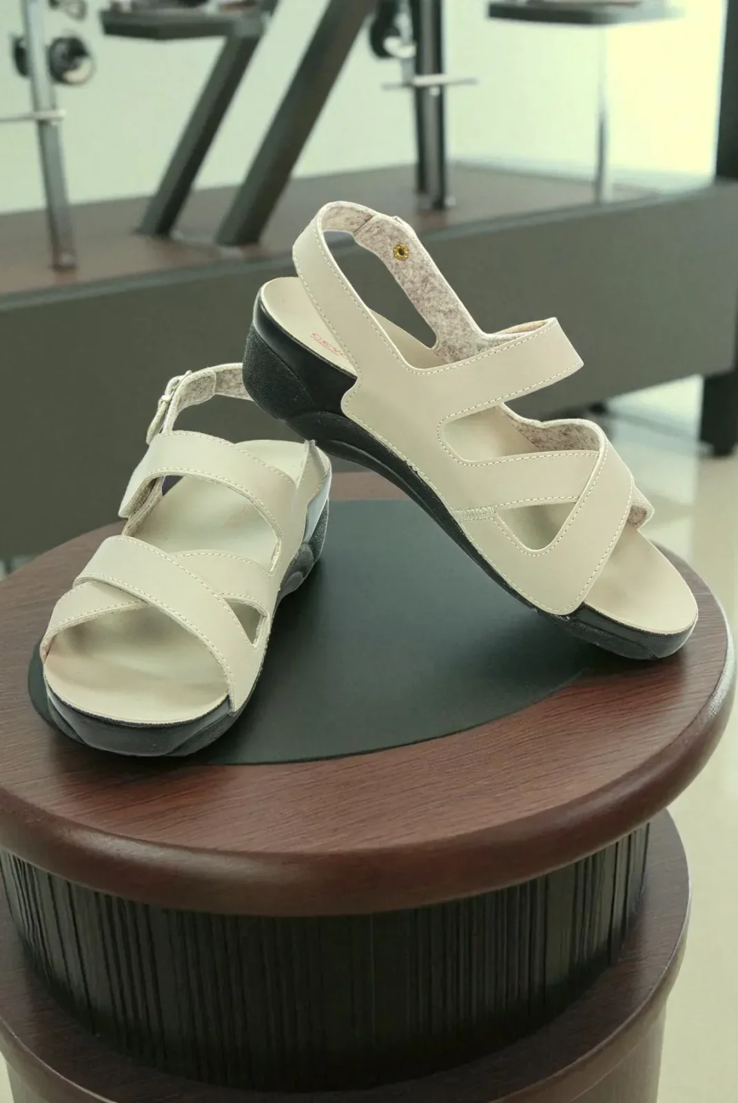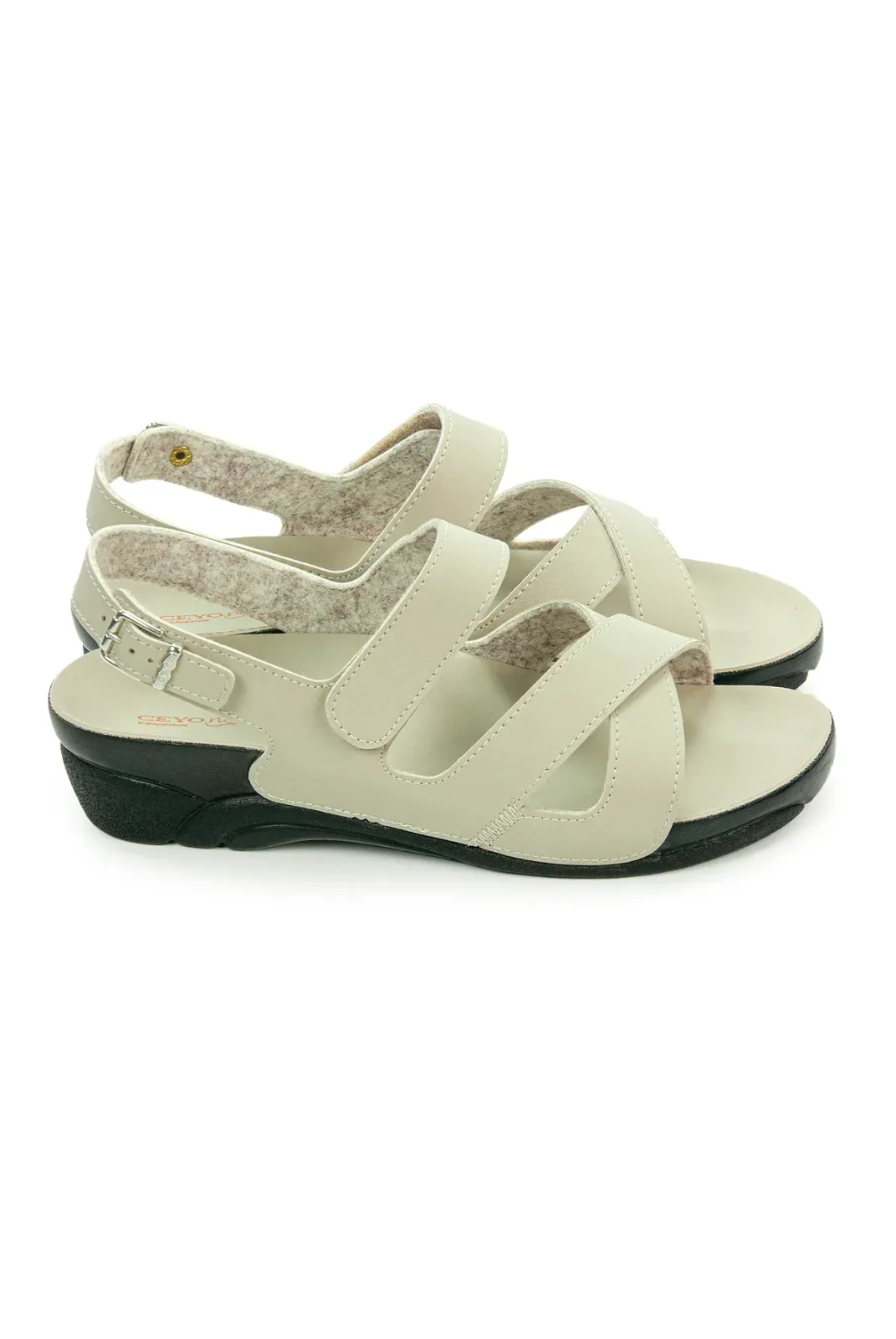 Ceyo Tokalı ve Cırt Cırtlı Ayarlanabilir Kadın Hac Umre Sandaleti Krem