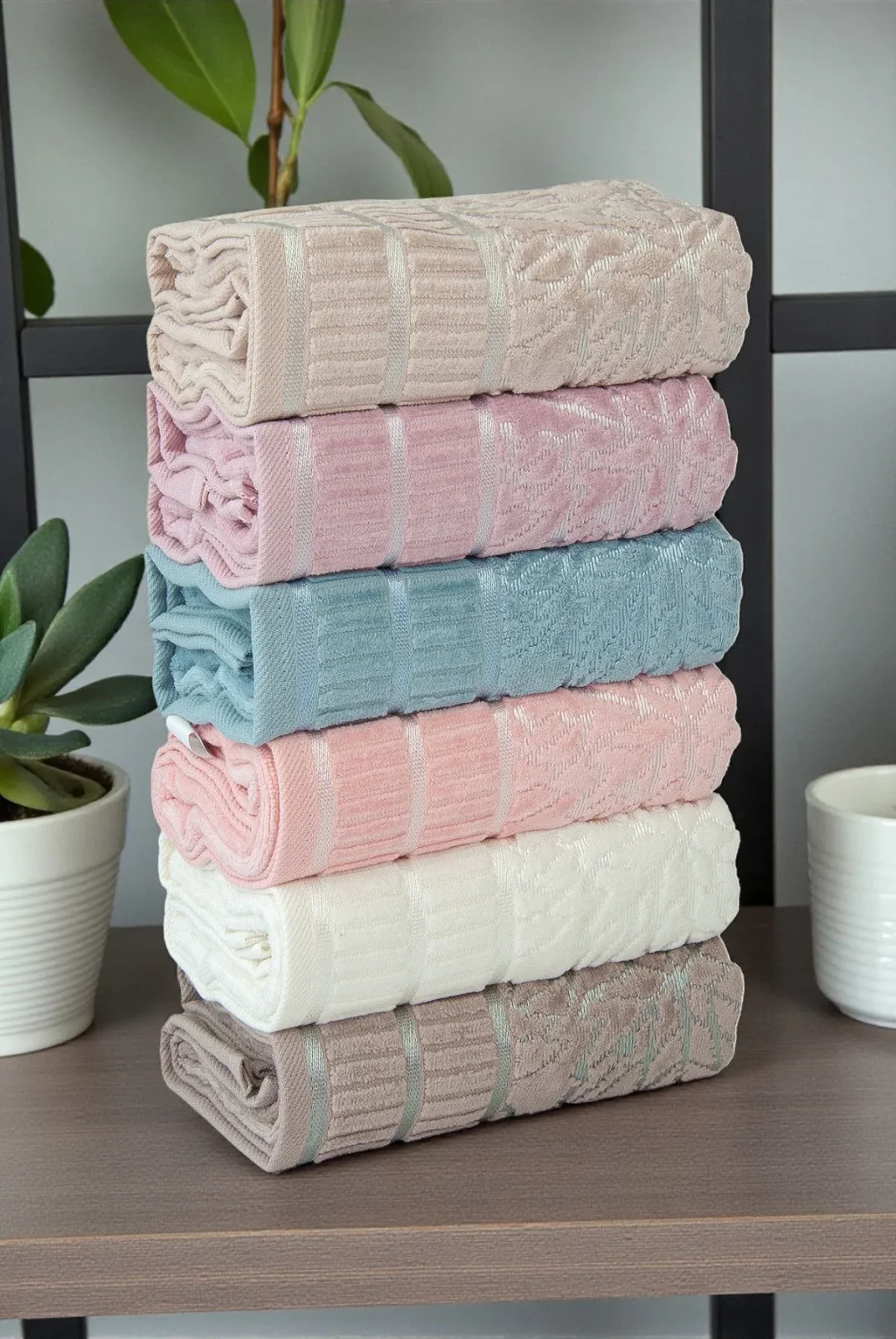 Çınar Jakarlı 6’lı Kadife Karışık Renkli Havlu Seti, zarif dokusu ve yüksek su emiciliğiyle banyolarda hem şıklık hem de konfor sunar.