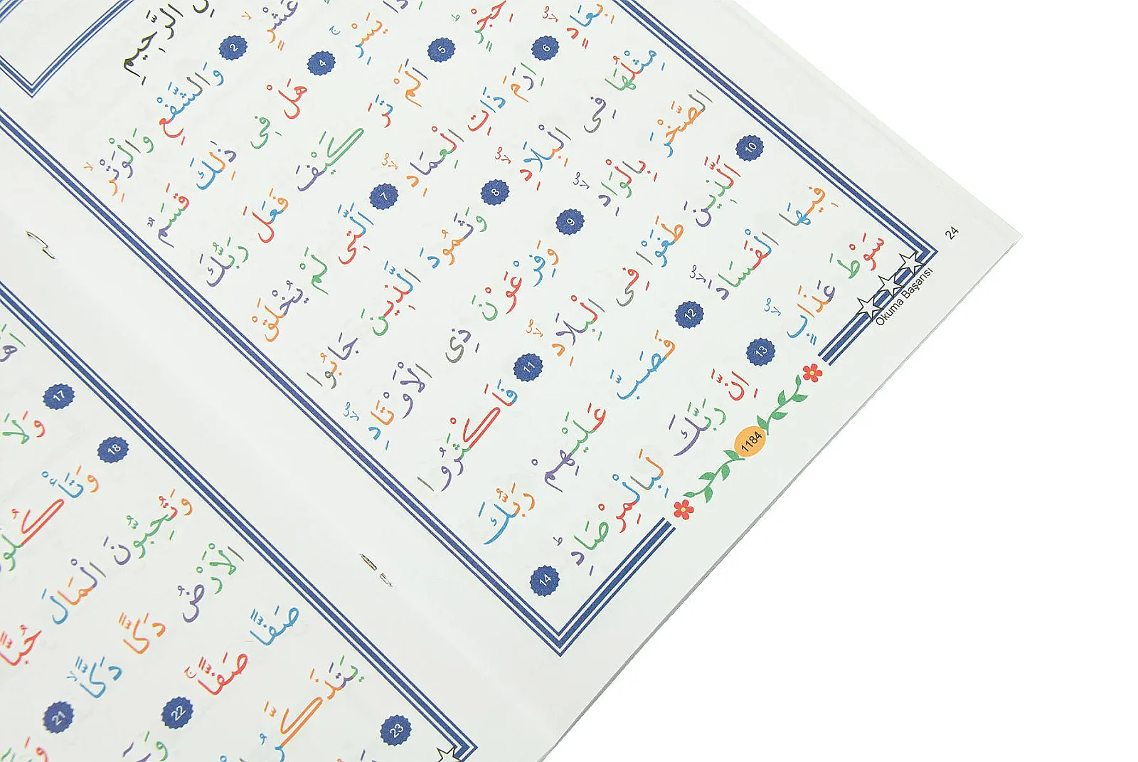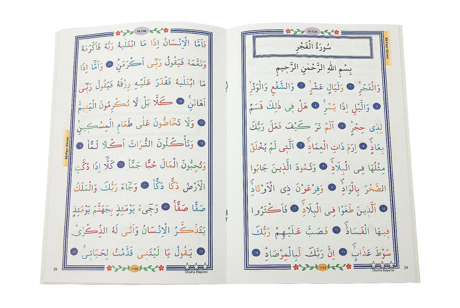 Çocukların Kur’an öğrenme sürecini kolaylaştırmak amacıyla özel olarak hazırlanmış bu eser, renkli baskısı ve bilgisayar hatlı yazı stili ile dikkat çeker.