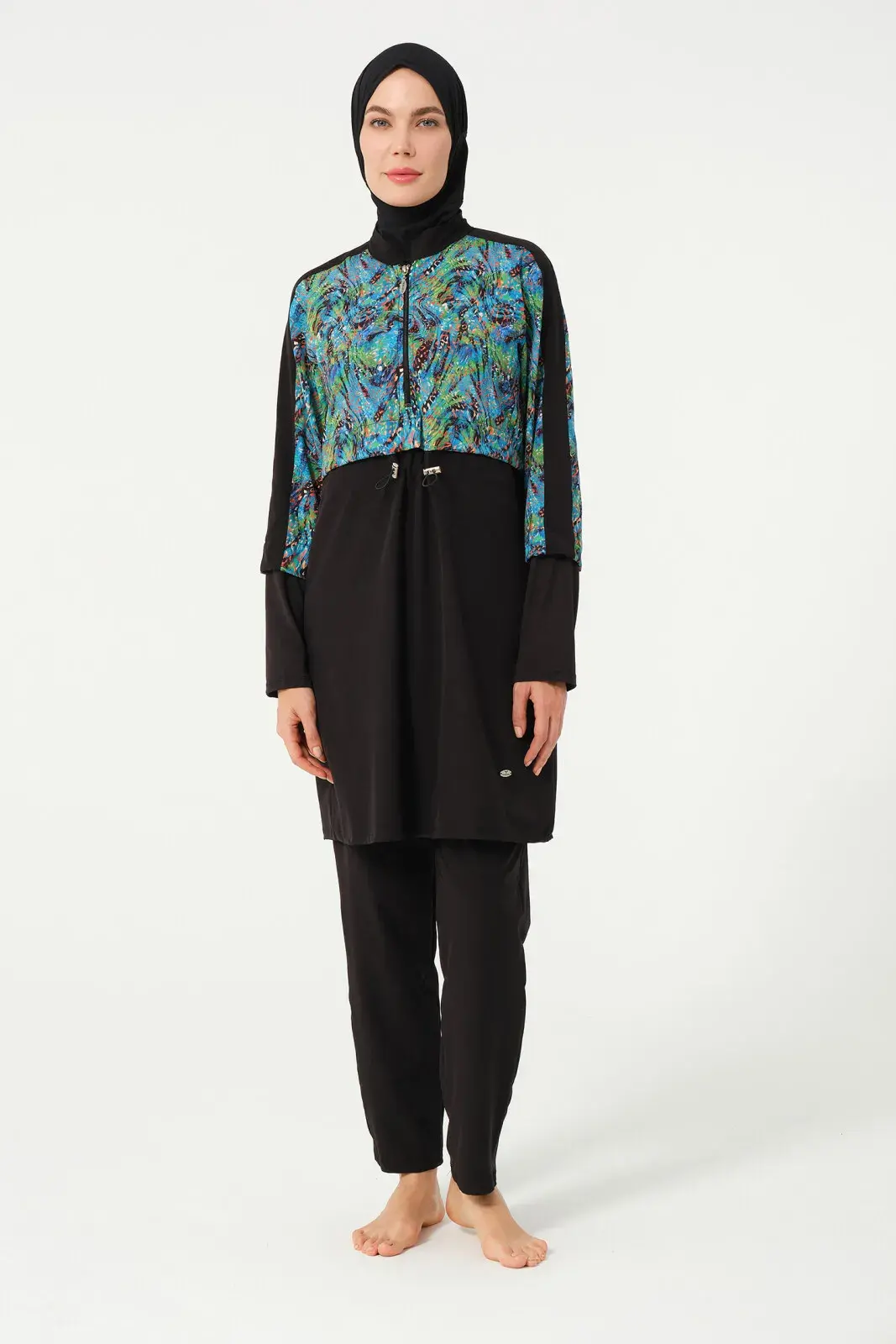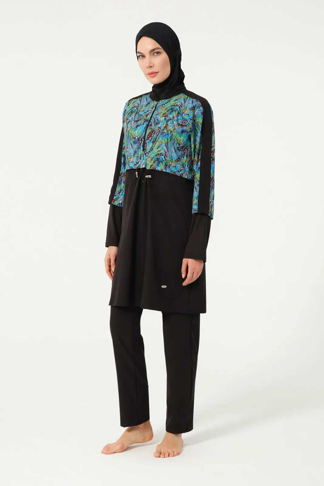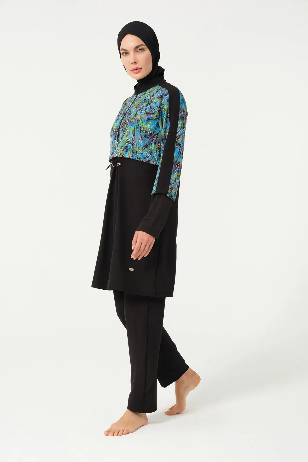 Crop Detaylı Sporcu Tam Kapalı Tesettür Mayo 3011-25 Siyah