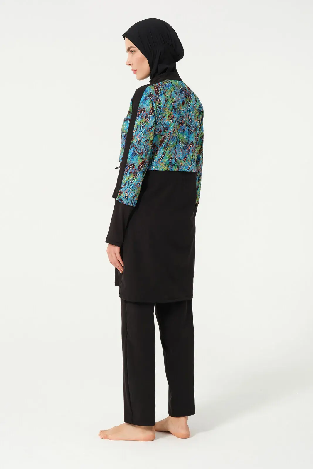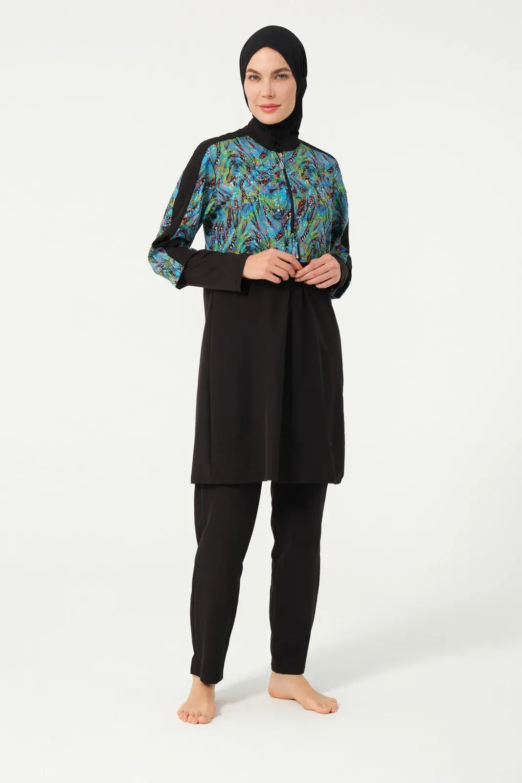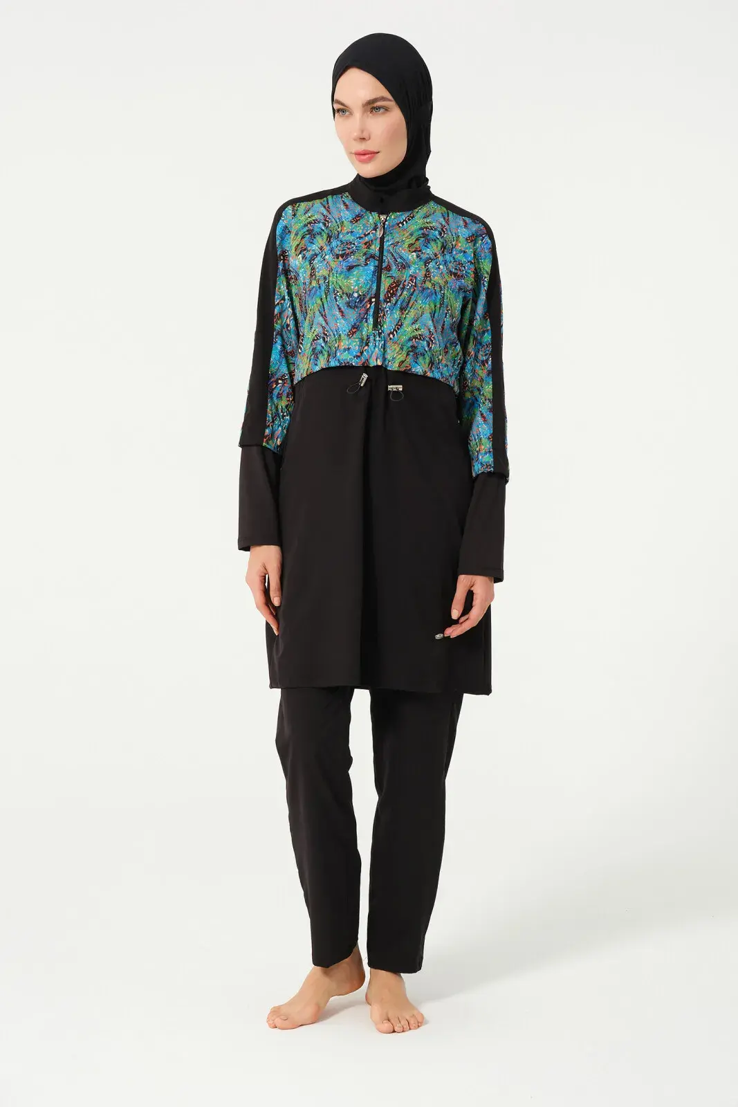 Crop Detaylı Sporcu Tam Kapalı Tesettür Mayo 3011-25 Siyah