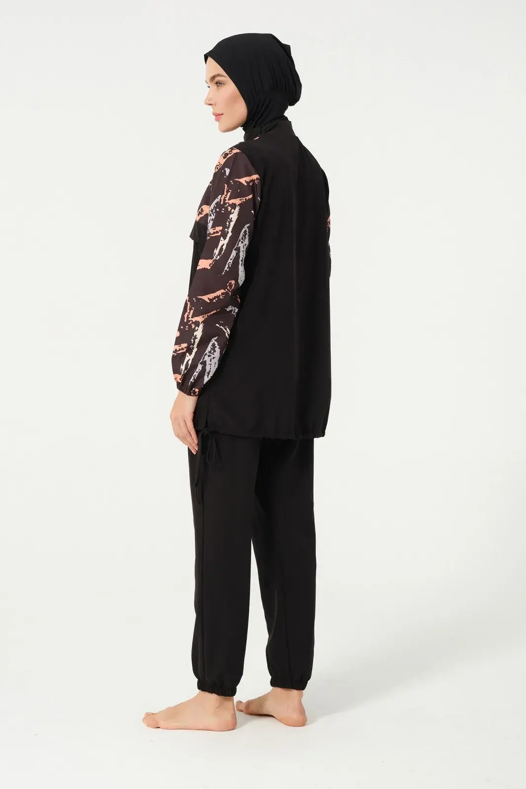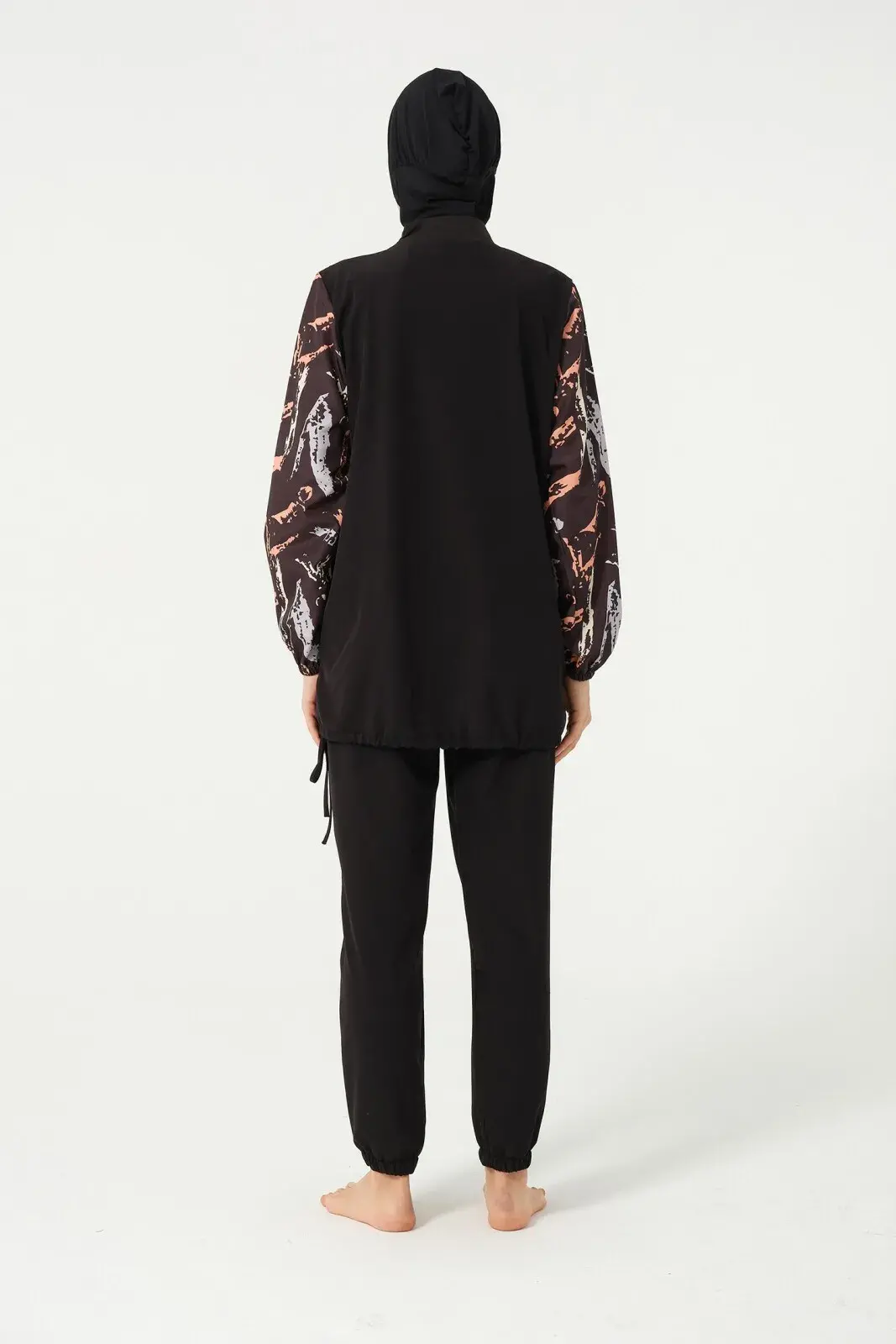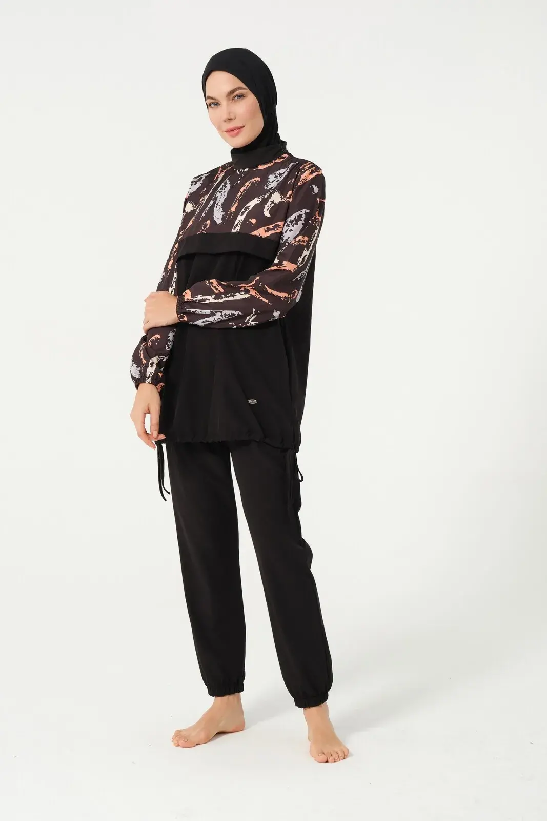 Crop Detaylı Sporcu Tam Kapalı Tesettür Mayo 3013-25 Siyah