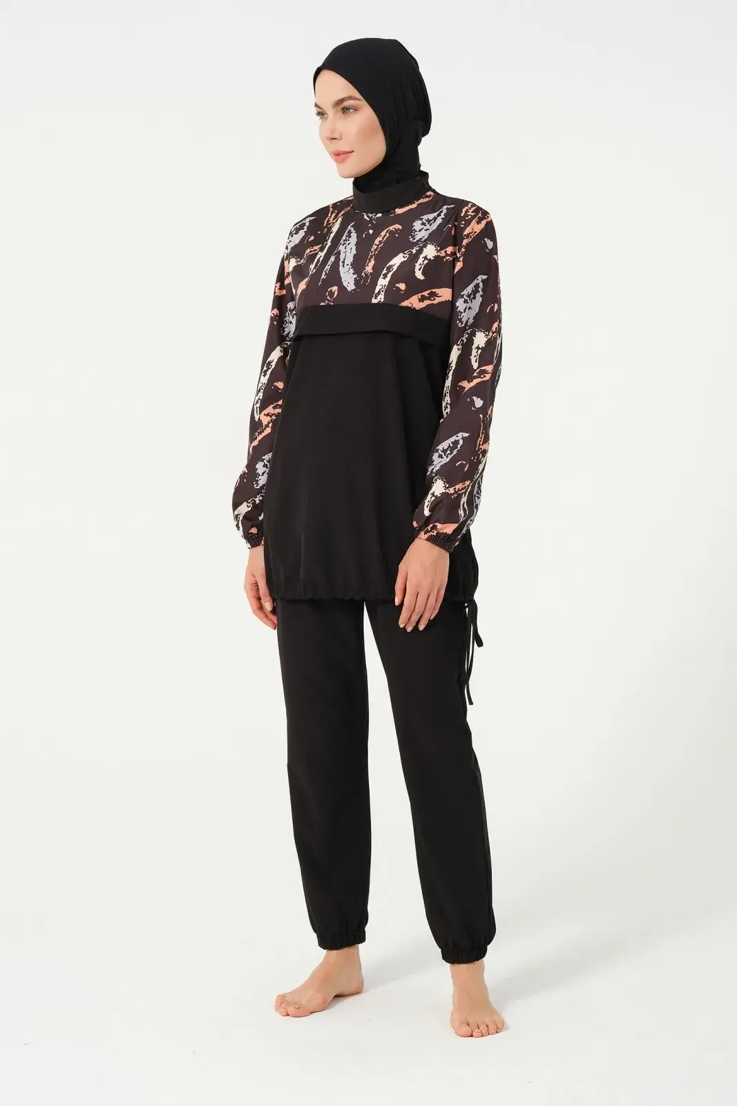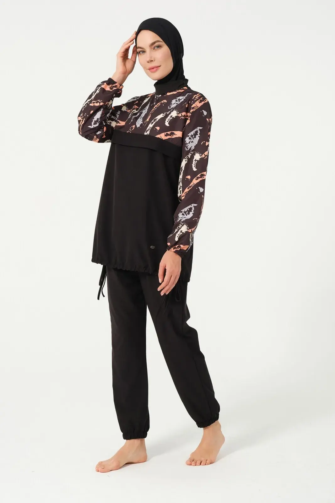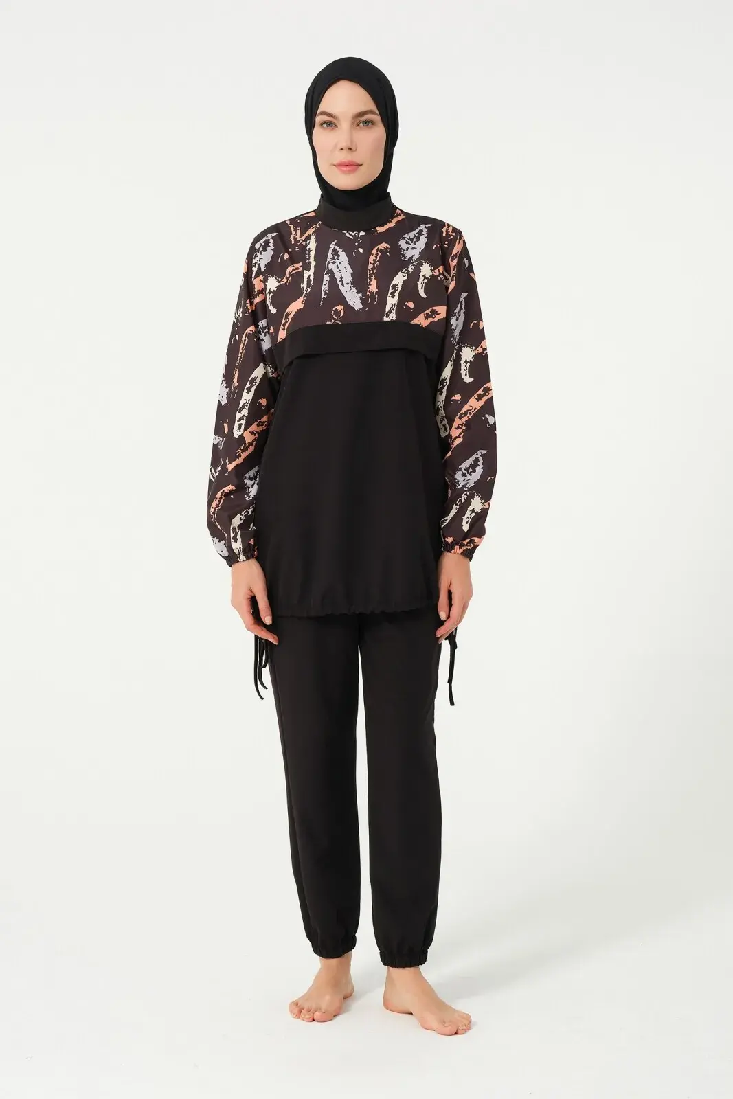 Crop Detaylı Sporcu Tam Kapalı Tesettür Mayo 3013-25 Siyah
