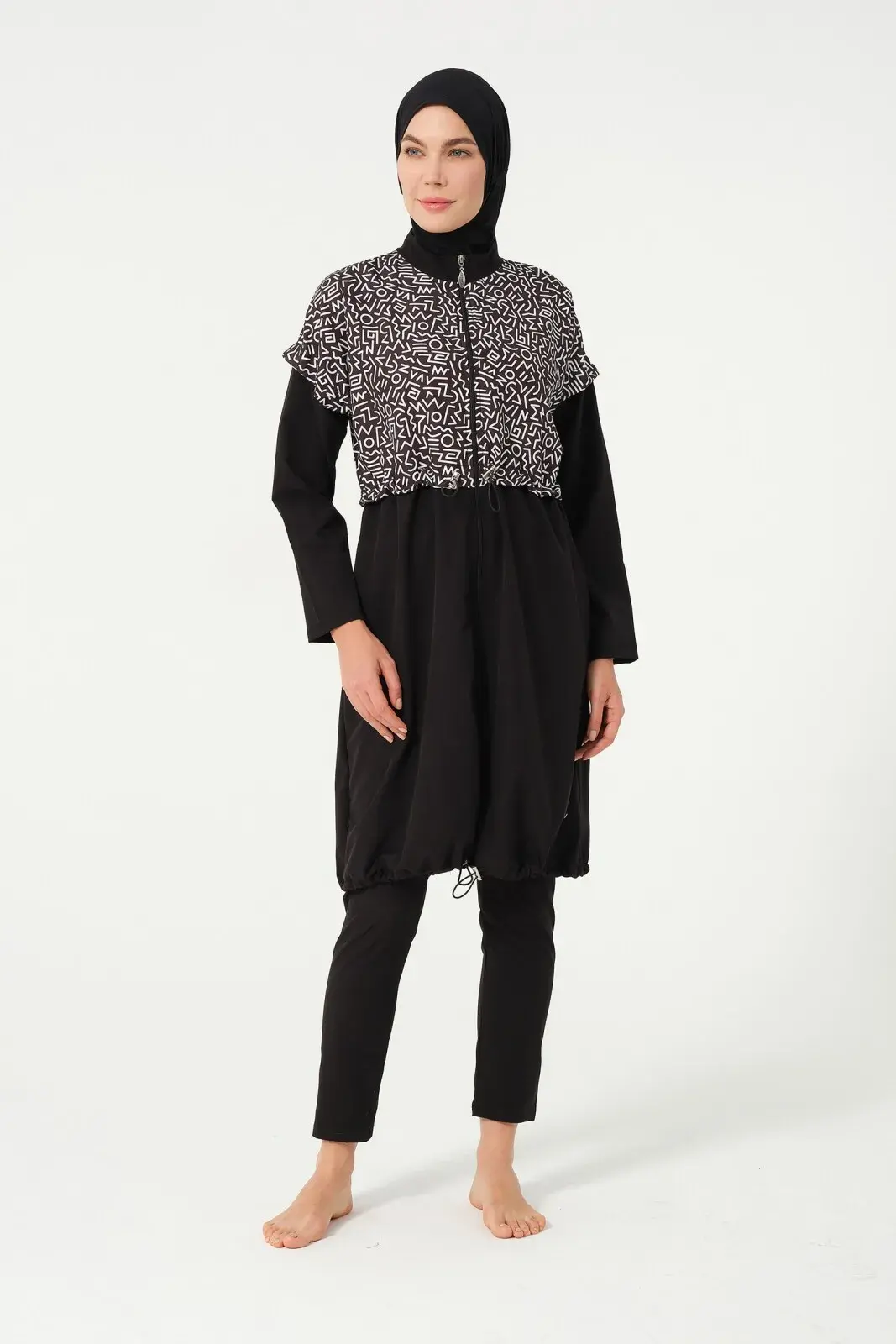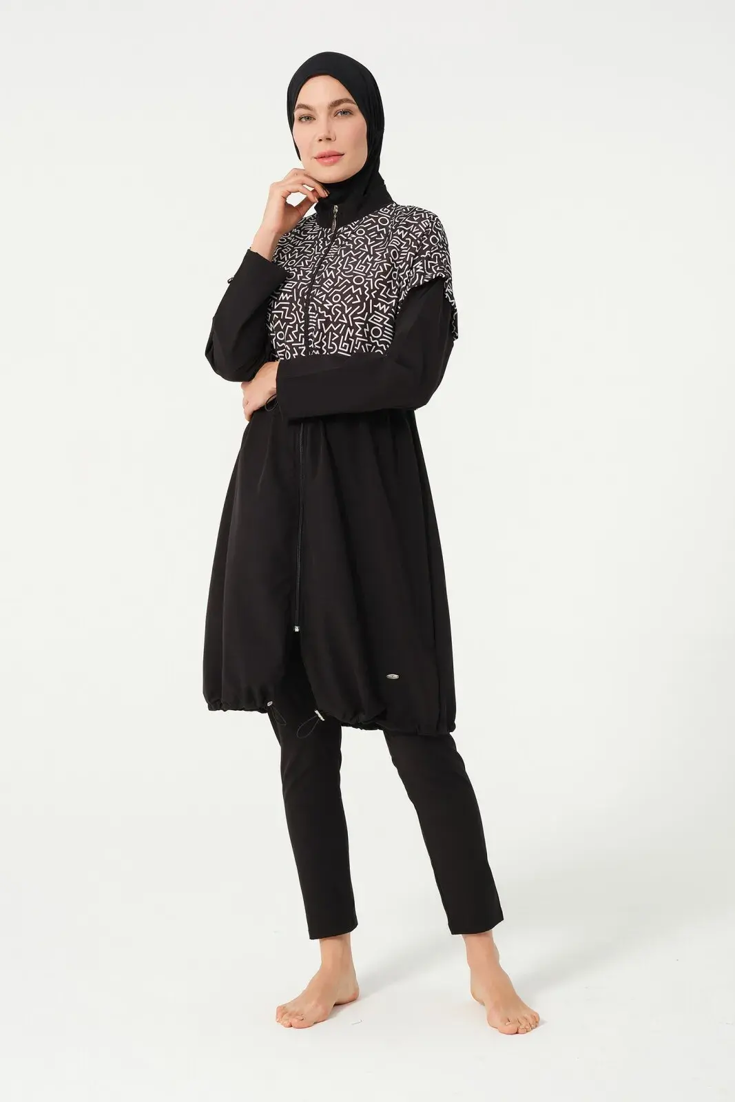 Crop Detaylı Sporcu Tam Kapalı Tesettür Mayo 3015-25 Siyah