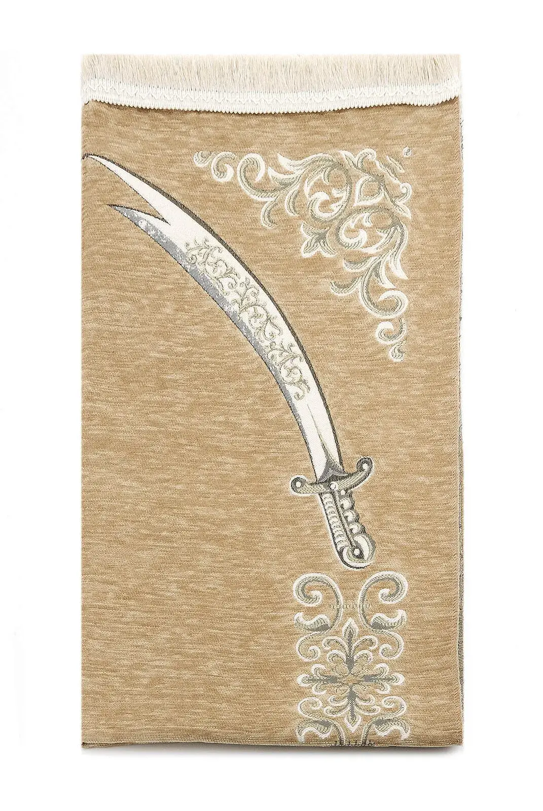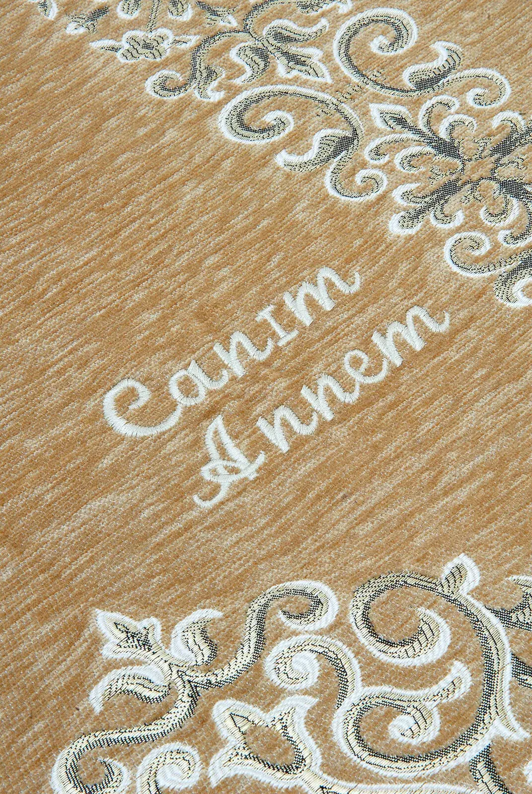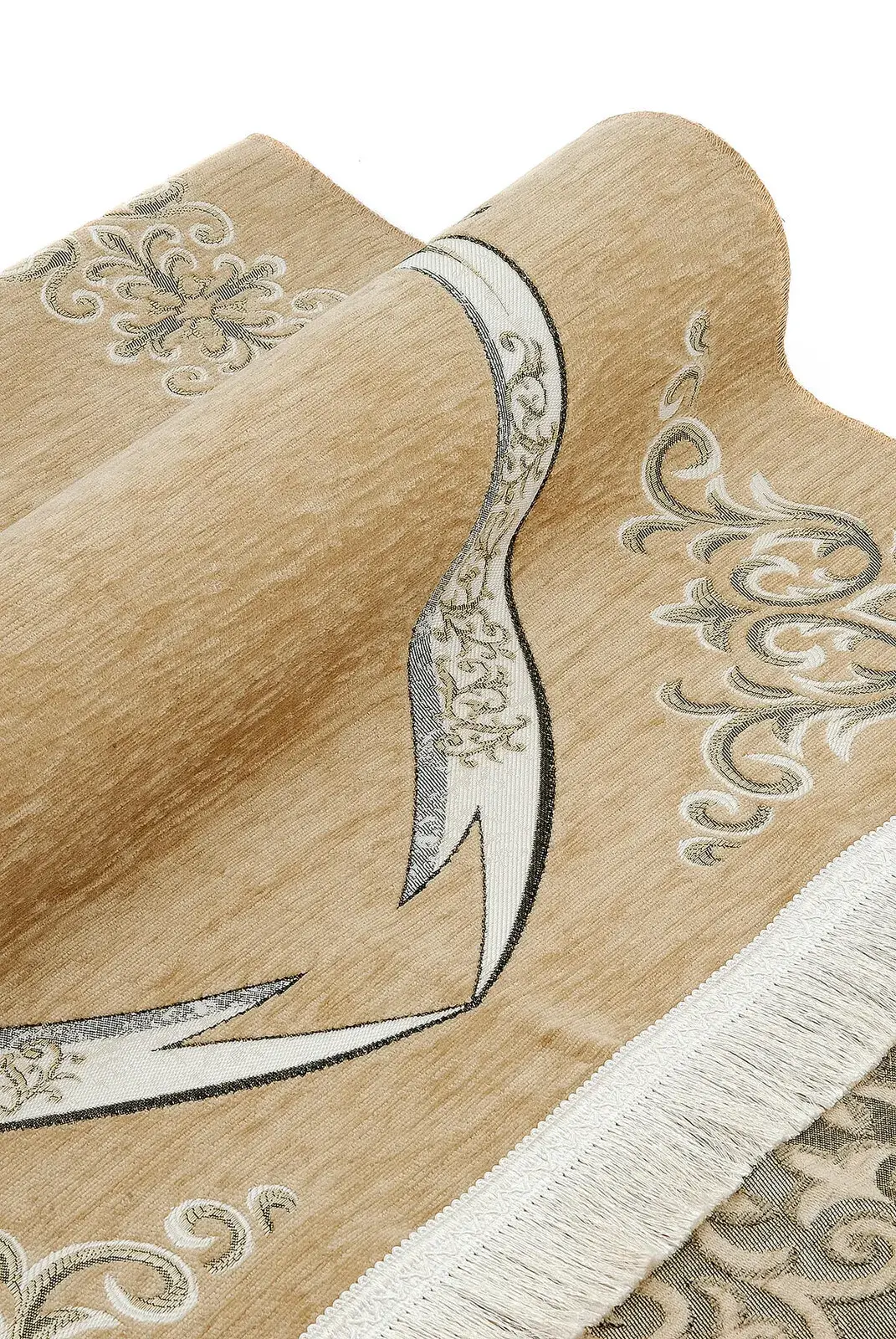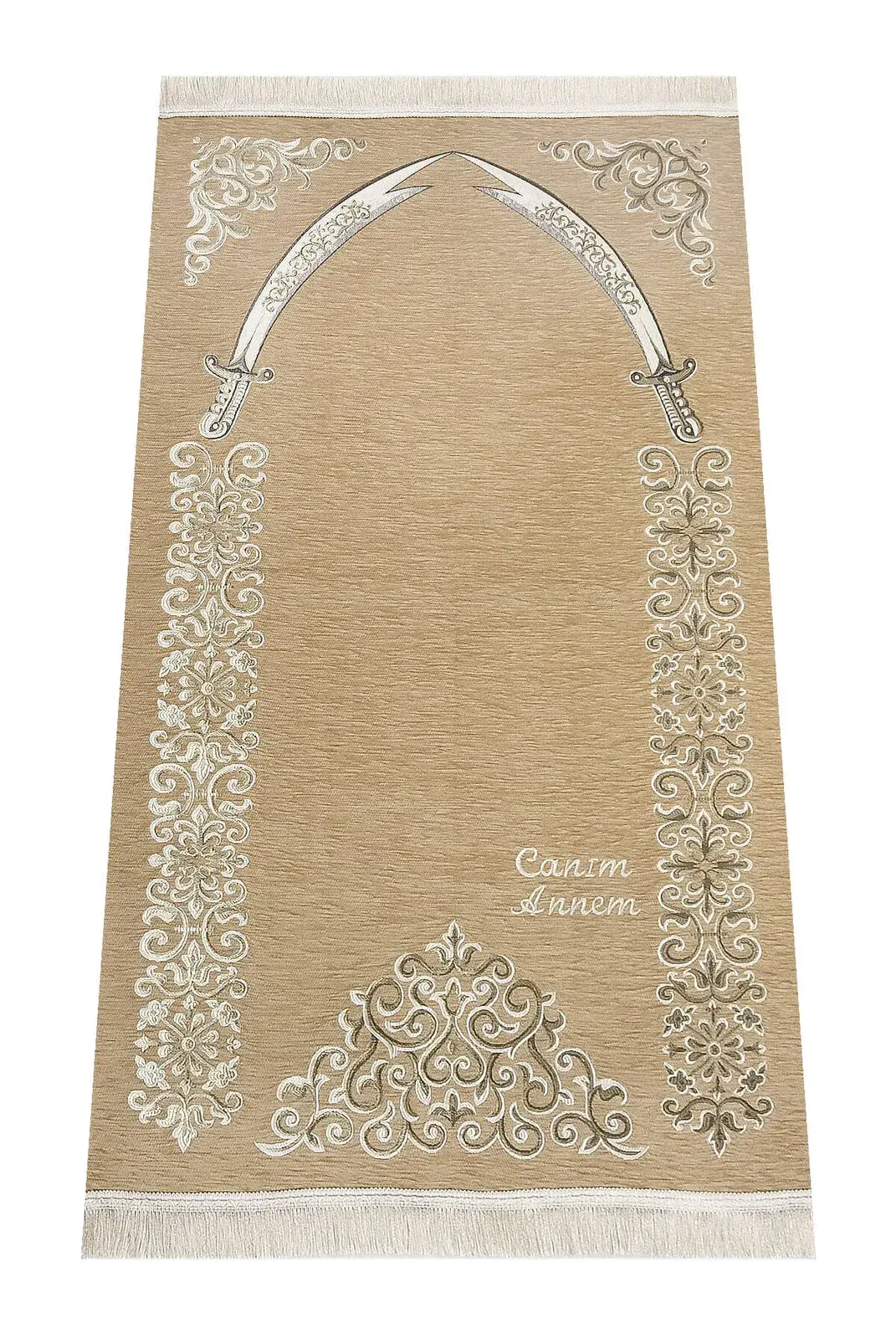 Custom Name Embroidered Zülfikar Patterned Ultra Plus Chenille Prayer Rug Gold Color