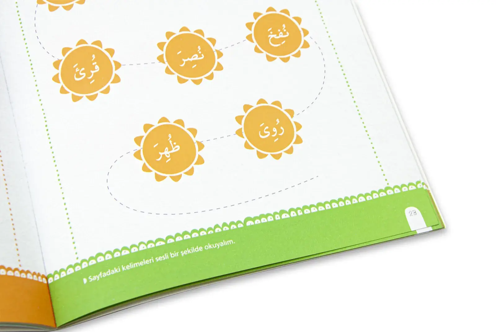 Değerli Eğitimciler ve Ebeveynler; "Harika Harfler Cüz Kitabı"nın amacı, çocuklarımıza Harika Harfler Etkinlik Kitabı'nda öğrendikleri/öğrenecekleri harfleri kelime içinde okumayı öğretmektir. Harfleri görsel olarak hatırlatan ve okunuşlarının çalışıldığı etkinliklerden sonra harekelerle ilgili tanımlamalar ve alıştırmalar yer almaktadır. Hareke (üstün, esre, ötre, cezm, şedde) uygulamalarında ilk etkinlikte harfleri harekeye göre seslendirme vardır. Daha sonra harekeye uygun kelime alıştırmaları bulunmaktadır. Sonrasında sırasıyla med harfleri, tenvinler, zamir, med işareti, mukatta harfleri etkinlikleri gelmektedir. Bu alıştırmalar çocuklarımızın Kur'an-ı Kerim öğrenmeyi daha kolay kavramalarına yardımcı olacaktır. Kitabın sonunda geleneksel bir etkinlik yer almaktadır: Âmin Alayı. Bu etkinliğin aile katılımı eşliğinde gerçekleşmesi uygundur. Çocukların Kur'an-ı Kerim'e geçiş heyecanını yaşamaları için tavsiye edilen bir etkinliktir. Kitap, temsili bir Kur'an-ı Kerim'e geçiş belgesi niteliğinde olan ilk vahyolunan ayeti okuma ve boyayarak çerçeveleme etkinliği ile son bulmaktadır. Bereketli ve yararlı çalışmalar olması dileğiyle...