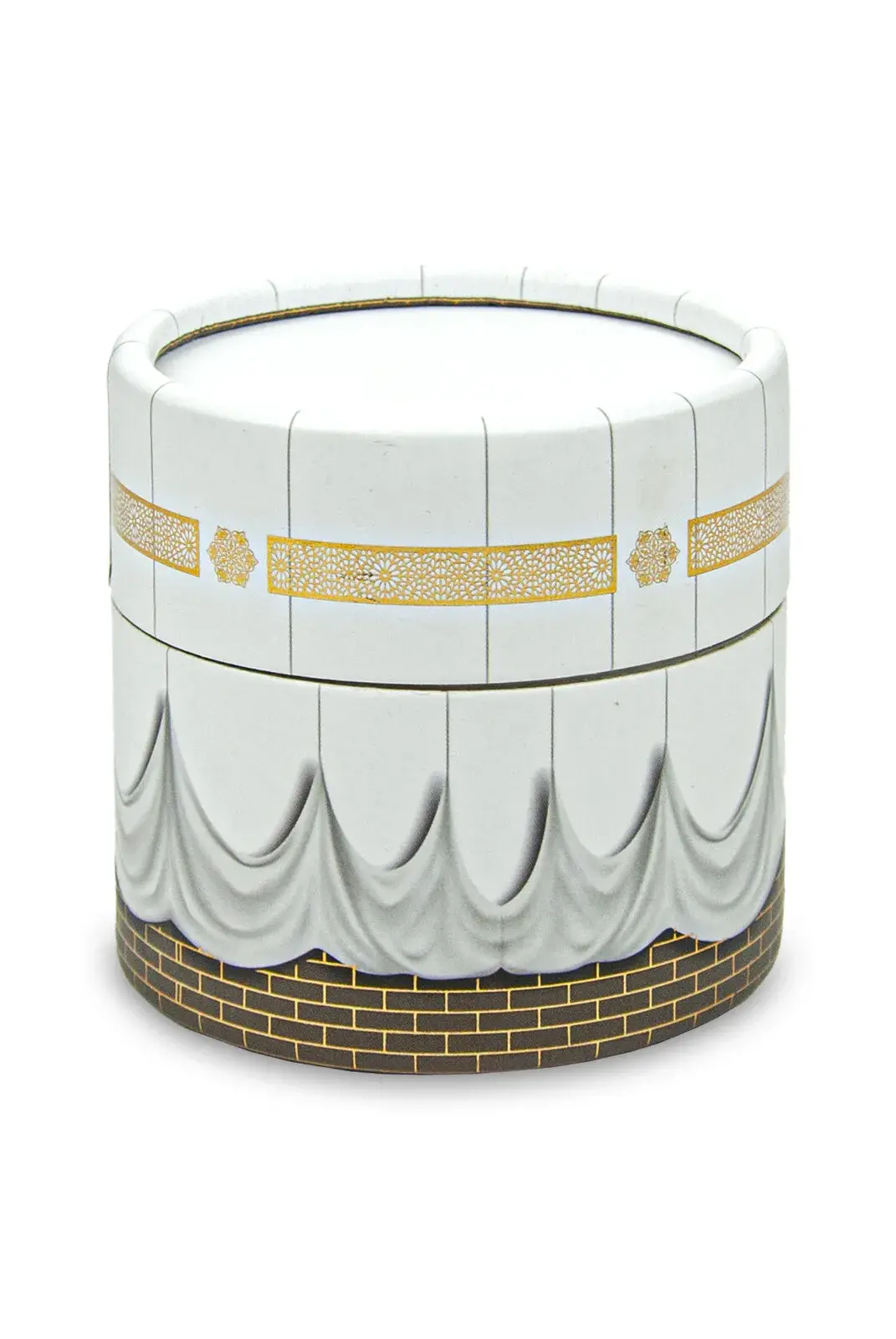 Cylinder Kaaba Mini Velvet Covered Quran and Cream Pearl Rosary Set