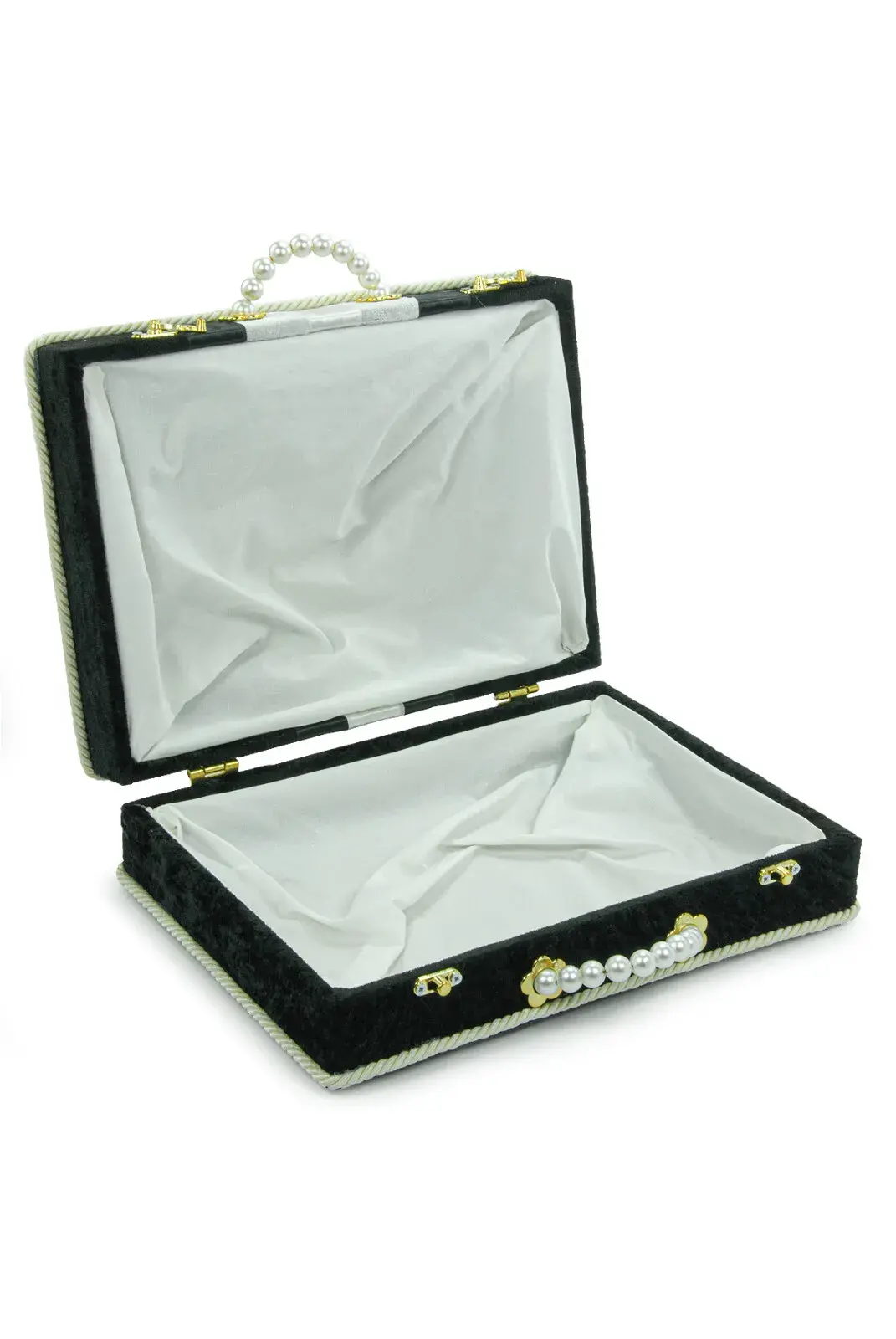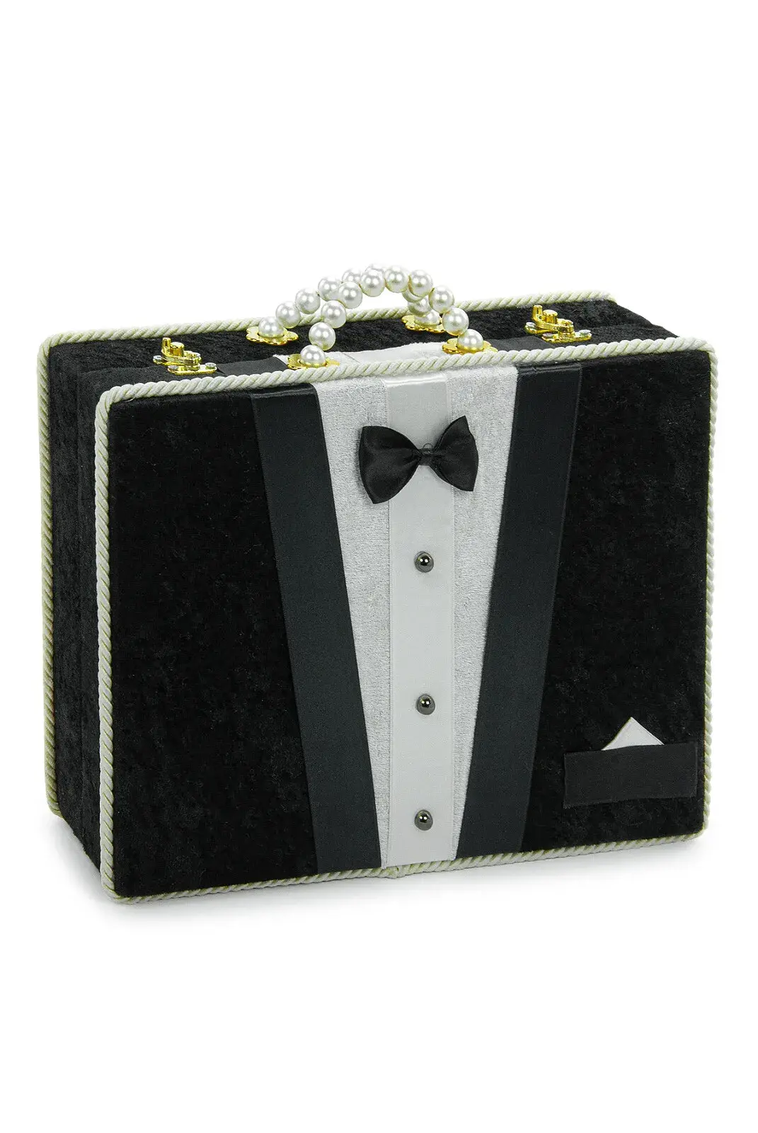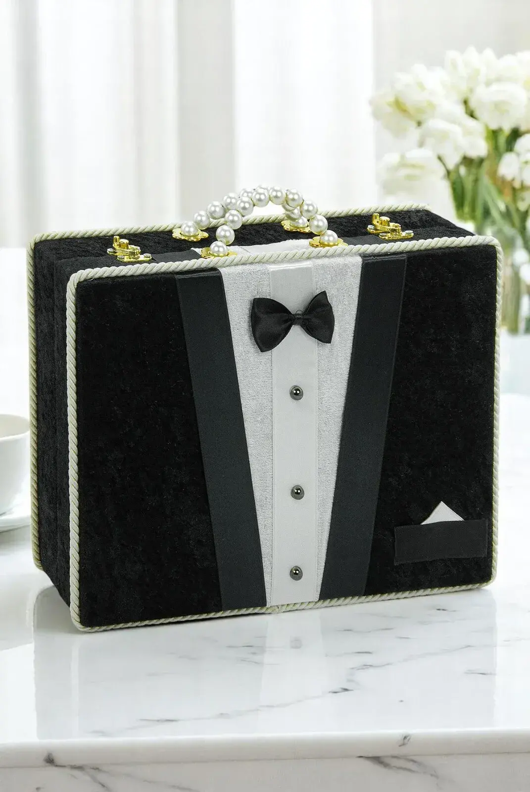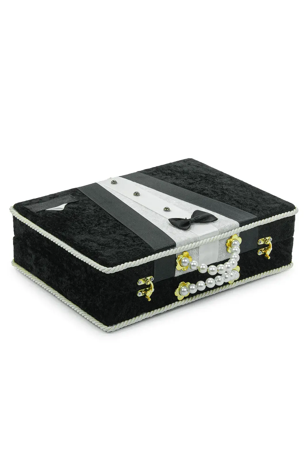 Damat Bohçası İçin Çeyizlik Kadife Sandık Siyah