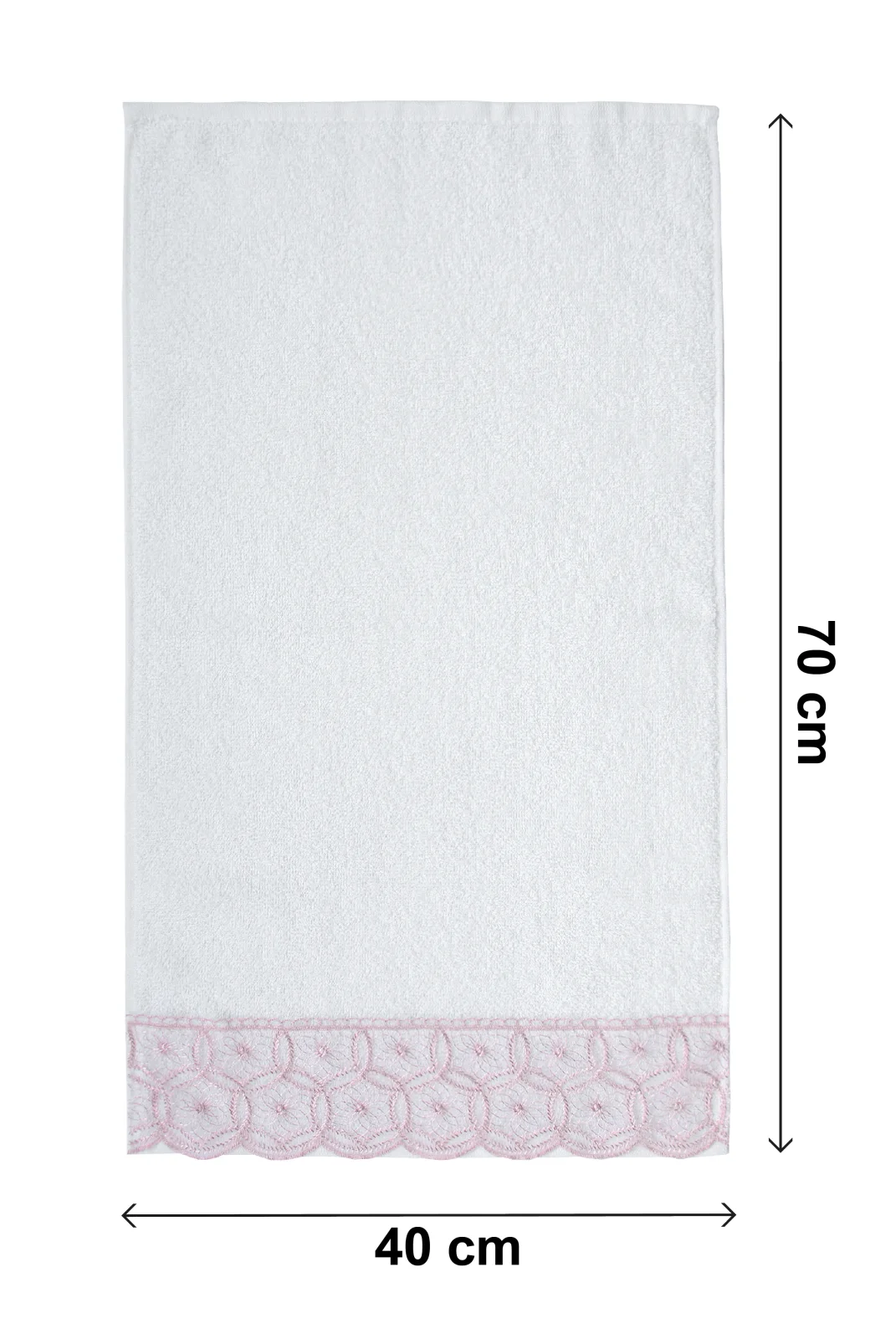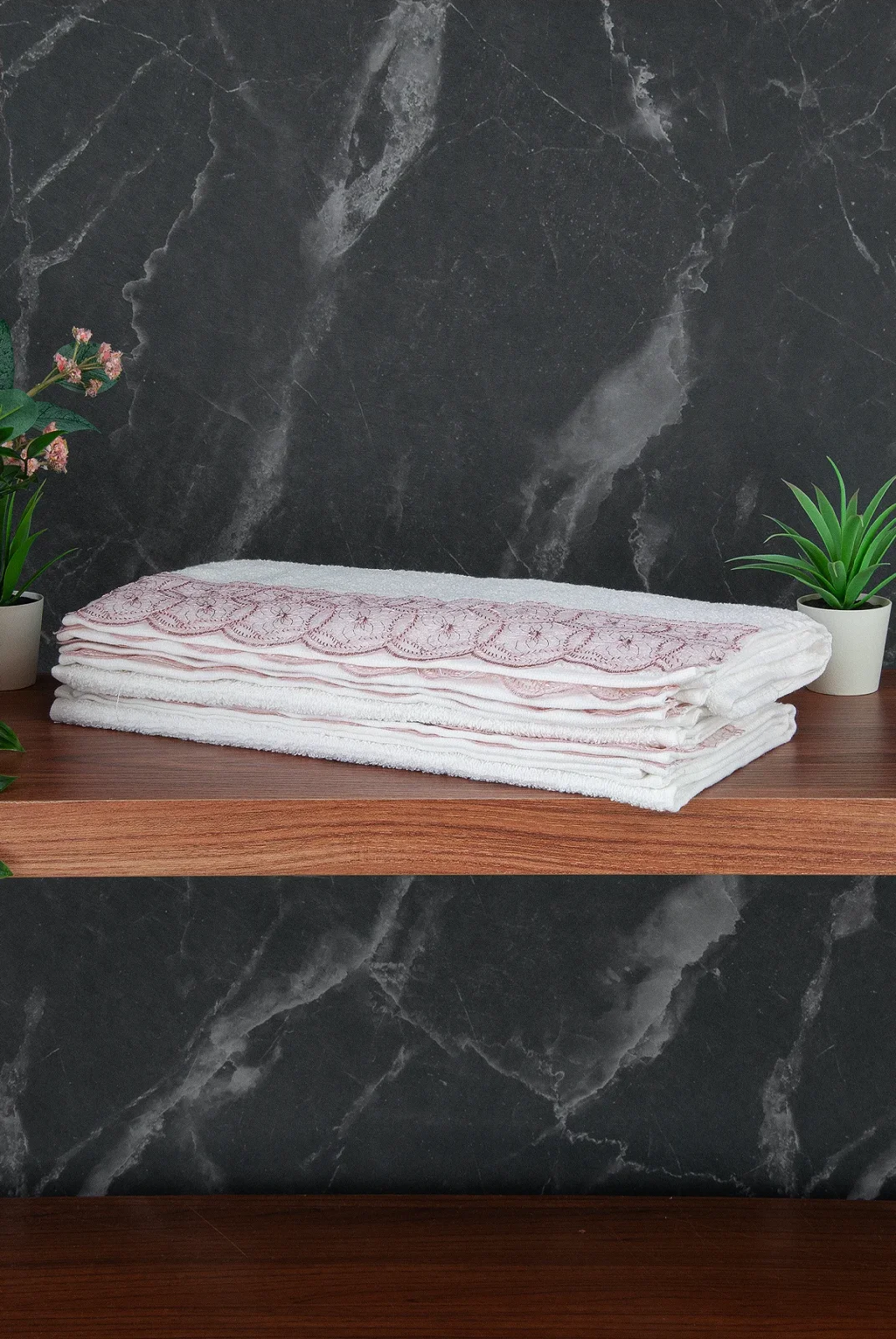Dantelli Güpürlü Lüks %100 Pamuk Çeyizlik 6 lı El Yüz Havlu Seti 40X70 - Pembe - 4400