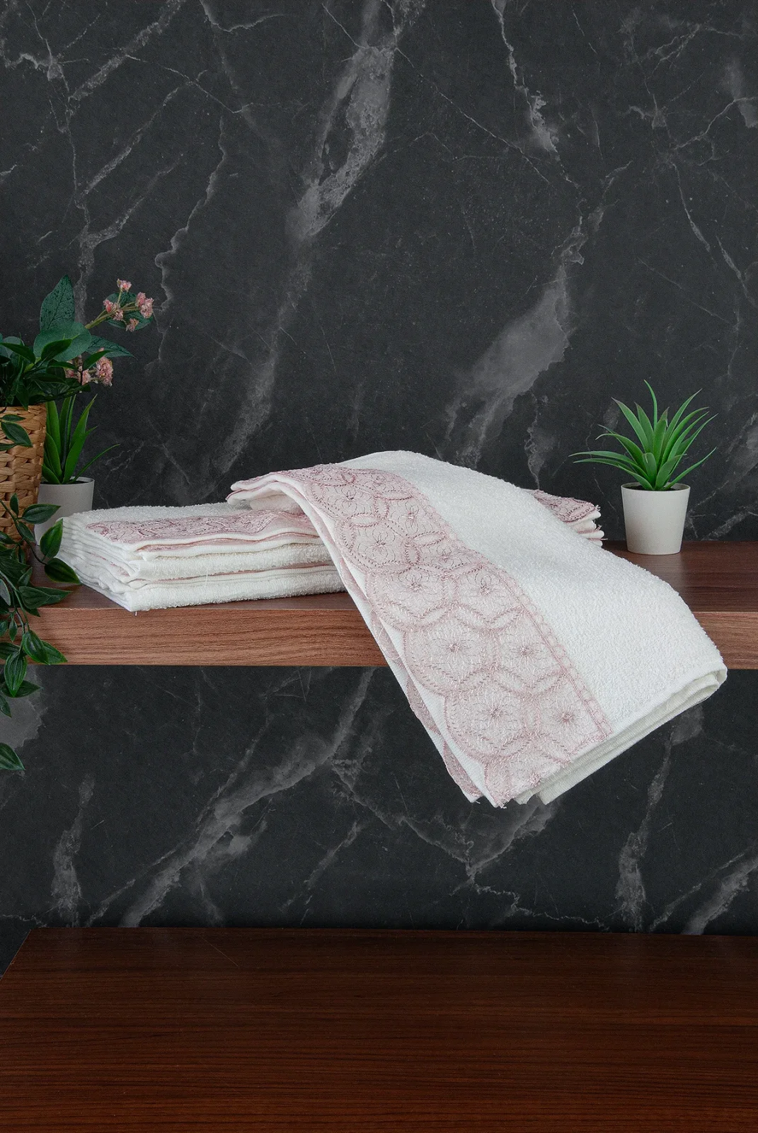 Zarif güpür dantel detayları ve yumuşak dokusuyla banyonuza şıklık katan bu lüks 6’lı el yüz havlu seti, %100 pamuklu yapısıyla maksimum yumuşaklık ve emicilik sunar. Her biri özenle nakış işlemeli olan havlular, cilde nazik dokusuyla günlük kullanımda da konfor sağlar.