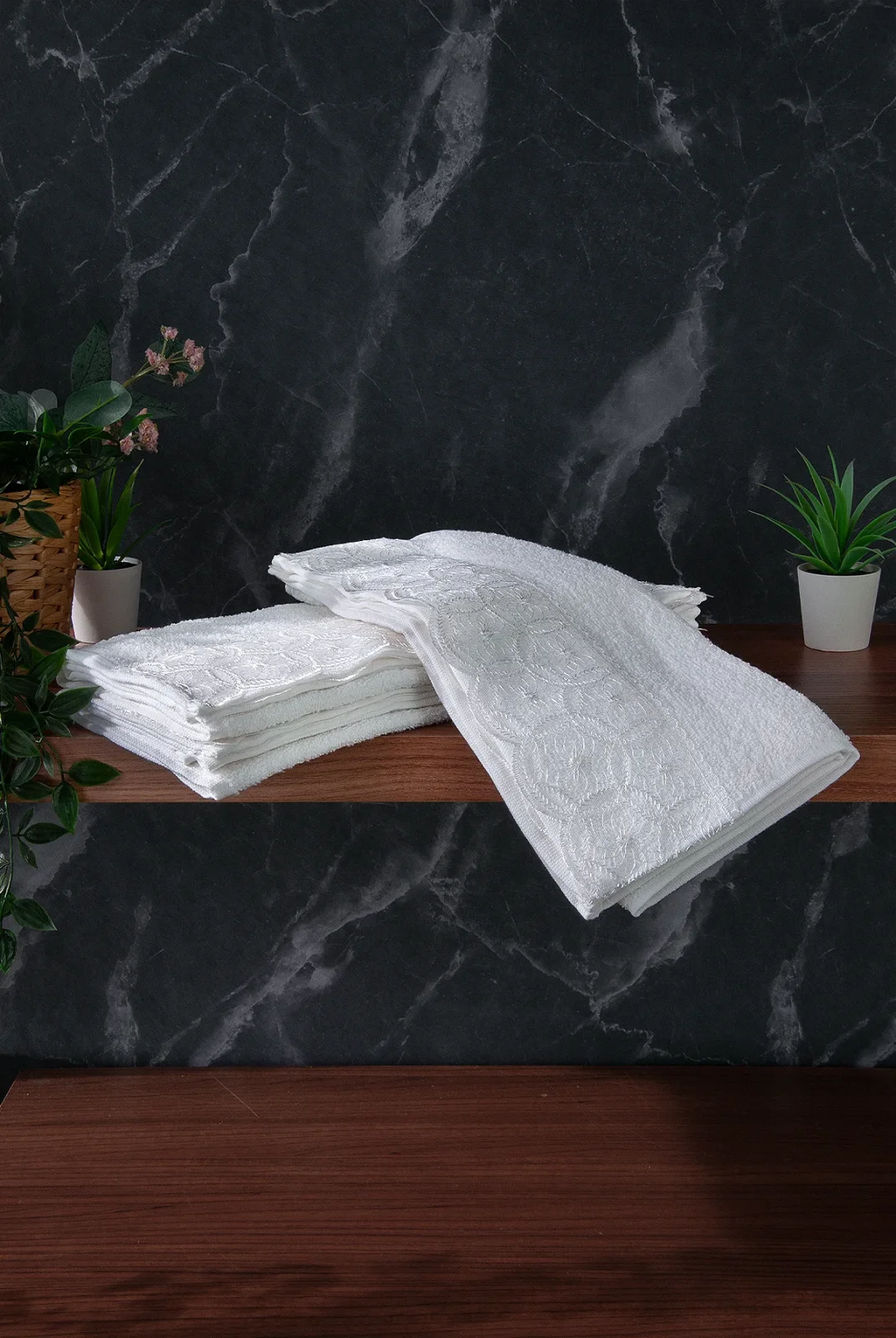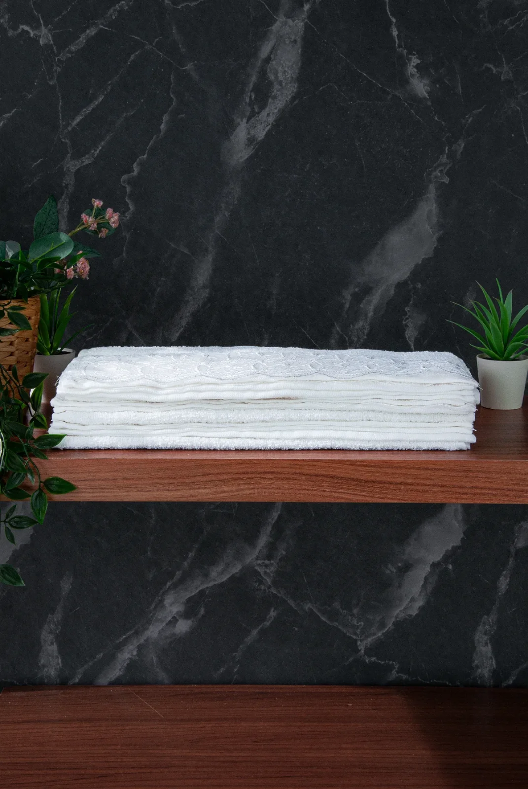 Zarif güpür dantel detayları ve yumuşak dokusuyla banyonuza şıklık katan bu lüks 6’lı el yüz havlu seti, %100 pamuklu yapısıyla maksimum yumuşaklık ve emicilik sunar. Her biri özenle nakış işlemeli olan havlular, cilde nazik dokusuyla günlük kullanımda da konfor sağlar.