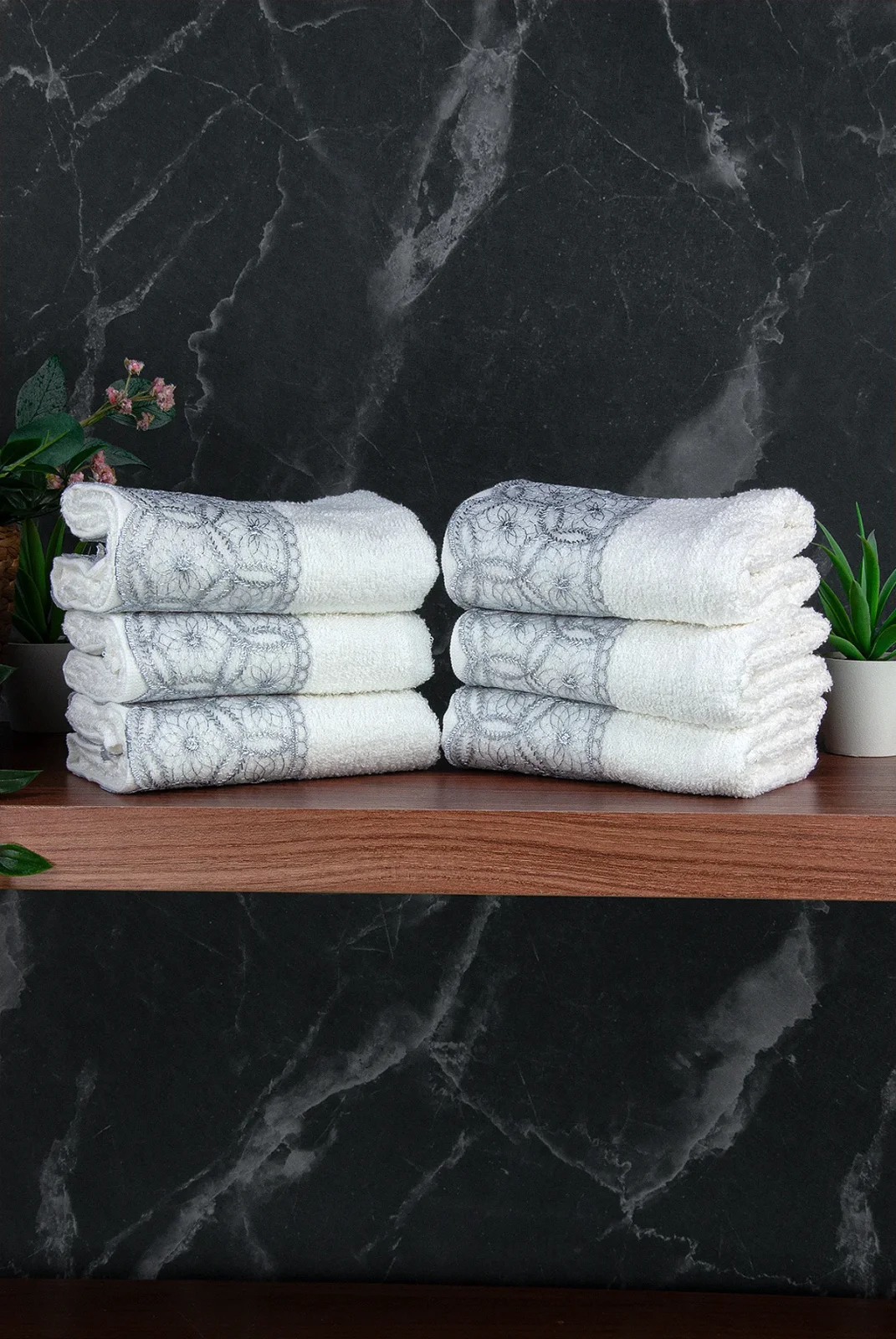 Dantelli Güpürlü Lüks %100 Pamuk Çeyizlik 6 lı El Yüz Havlu Seti 40X70 - Gri - 4400