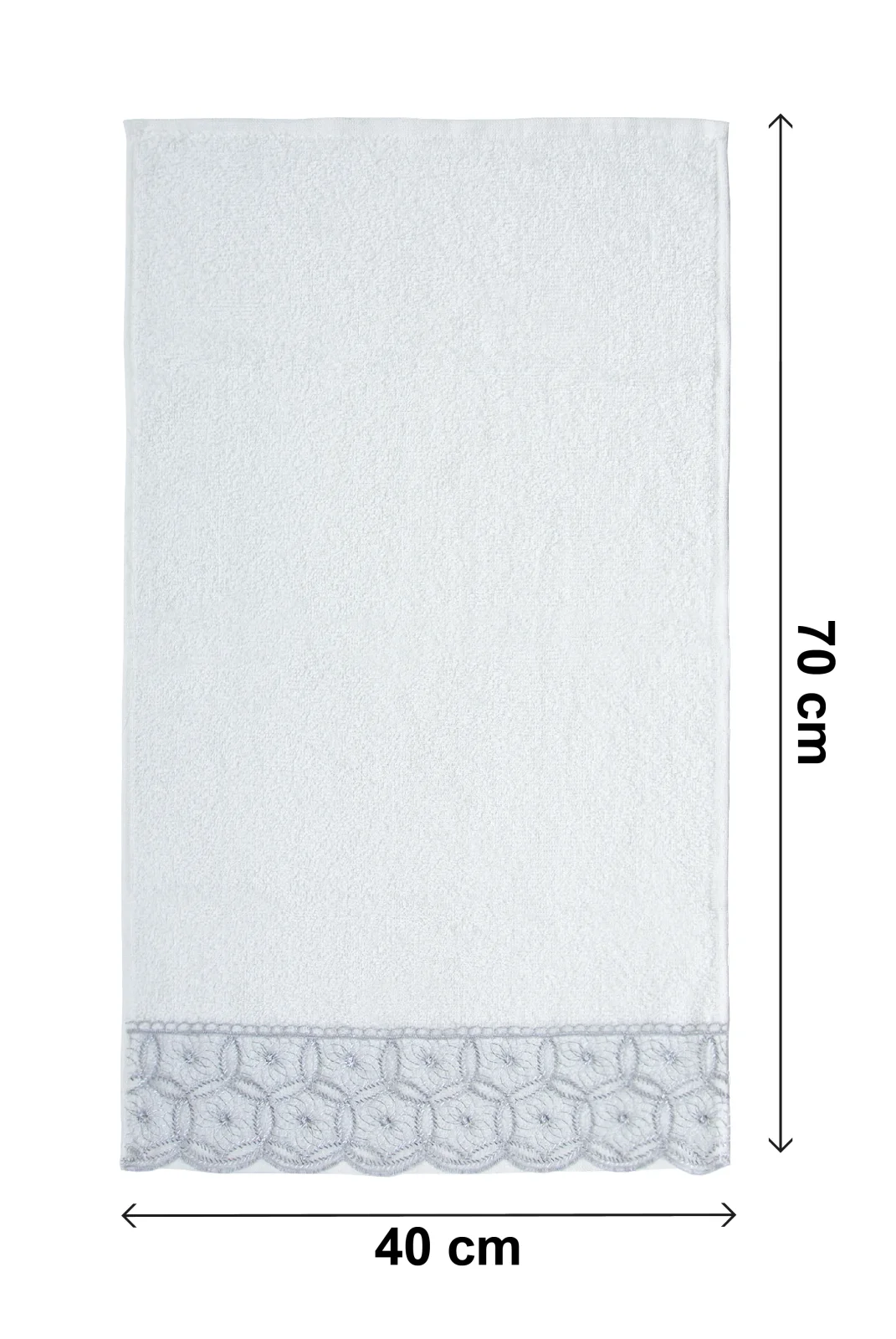 Zarif güpür dantel detayları ve yumuşak dokusuyla banyonuza şıklık katan bu lüks 6’lı el yüz havlu seti, %100 pamuklu yapısıyla maksimum yumuşaklık ve emicilik sunar. Her biri özenle nakış işlemeli olan havlular, cilde nazik dokusuyla günlük kullanımda da konfor sağlar.