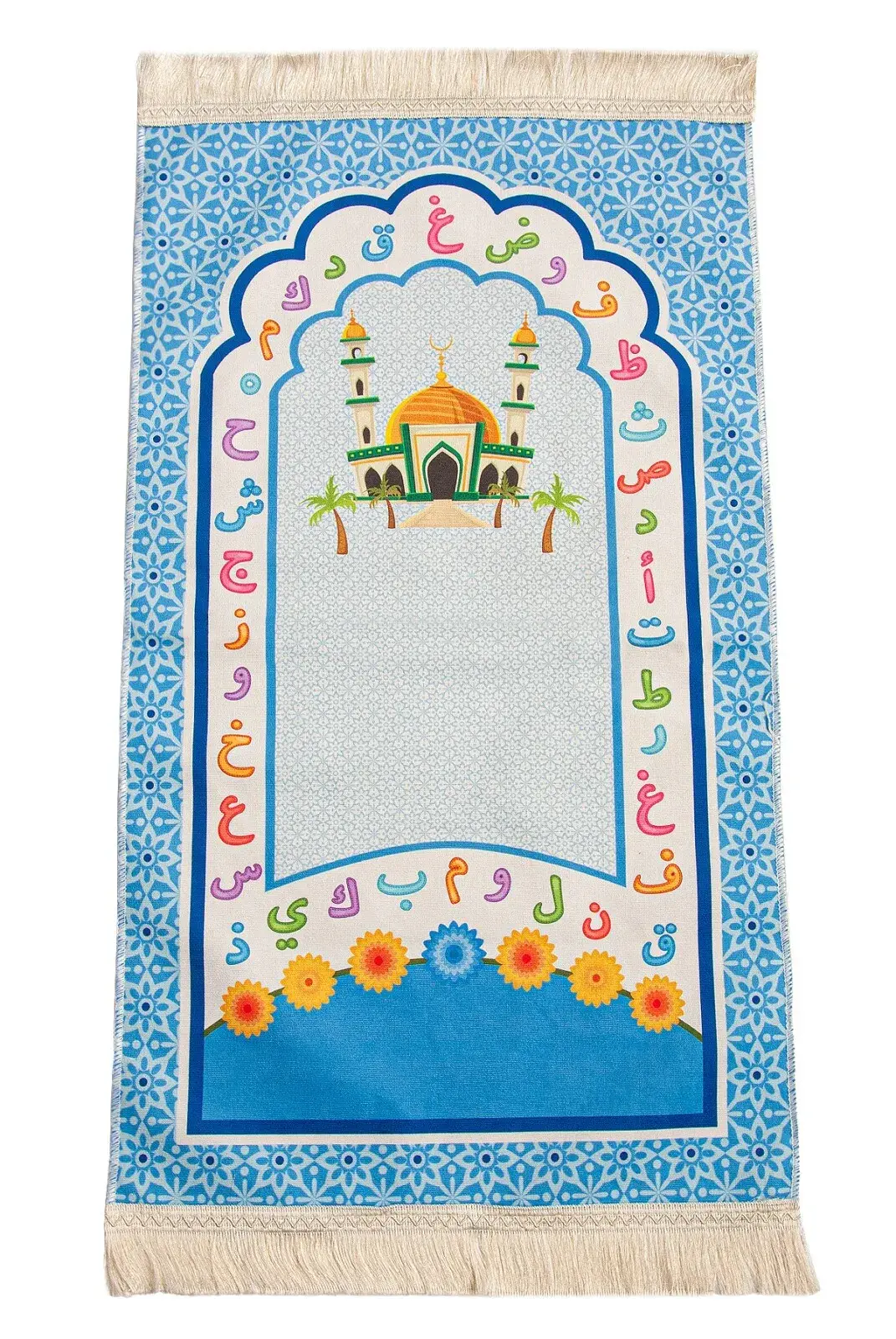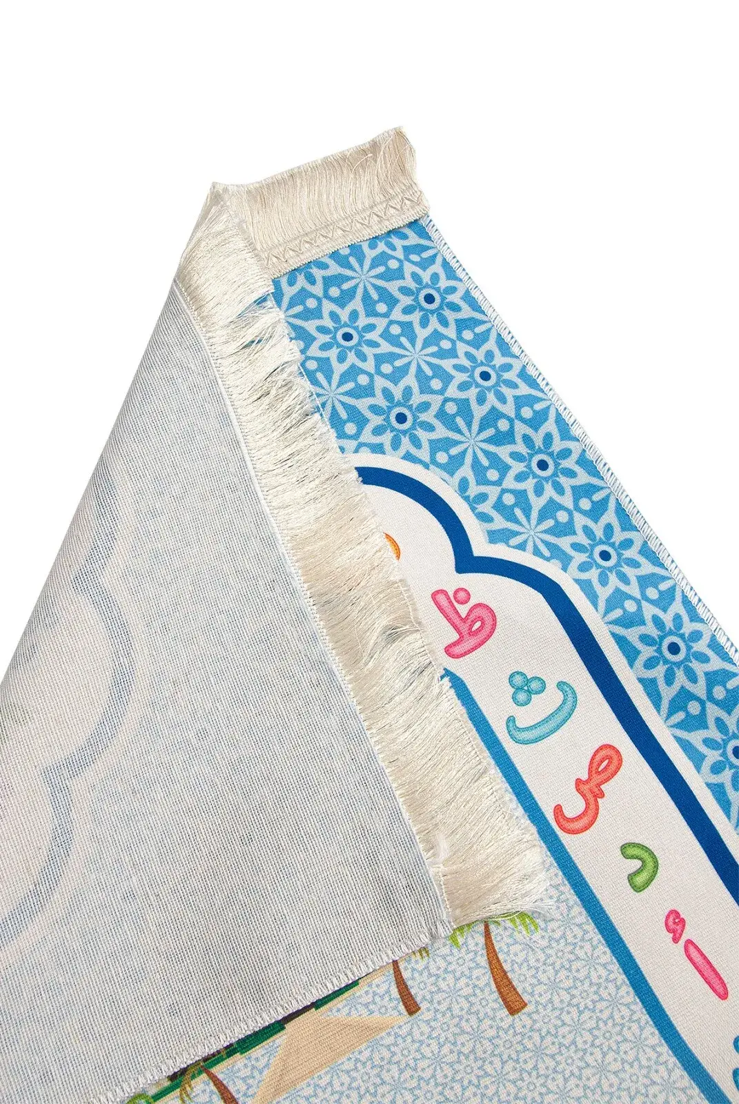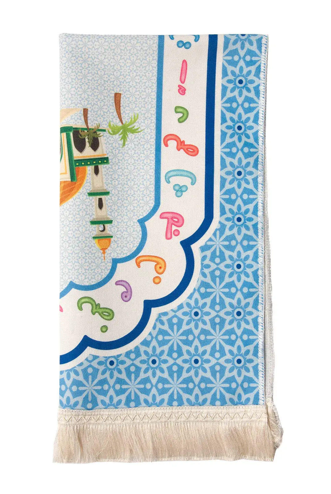 Dijital Baskılı Camili ve Arapça Alfabeli Çocuk Seccadesi Mavi