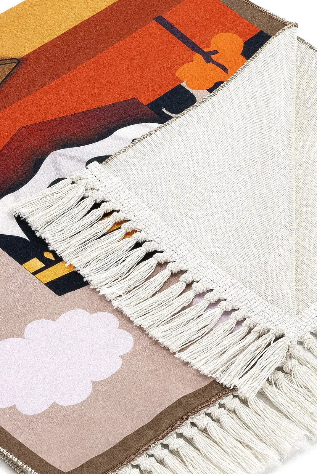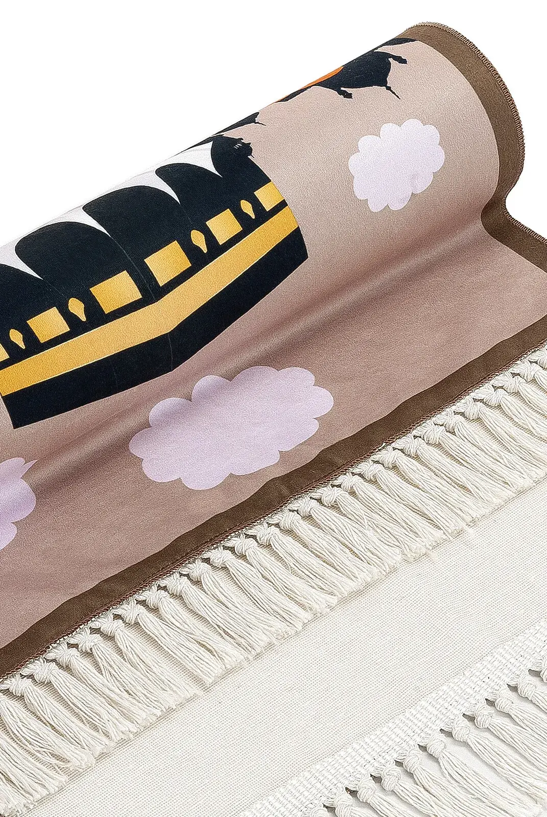 Dijital Baskılı Çocuk Seccadesi - Kayıklı Kabeli Kahverengi - 44 X 78 cm